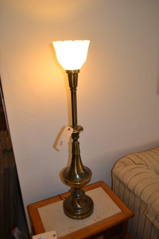 LOT 24 BRASS BASED TORCHIERE TABLE LAMP