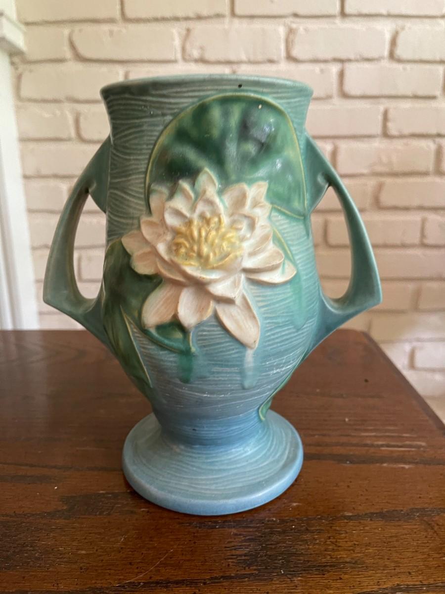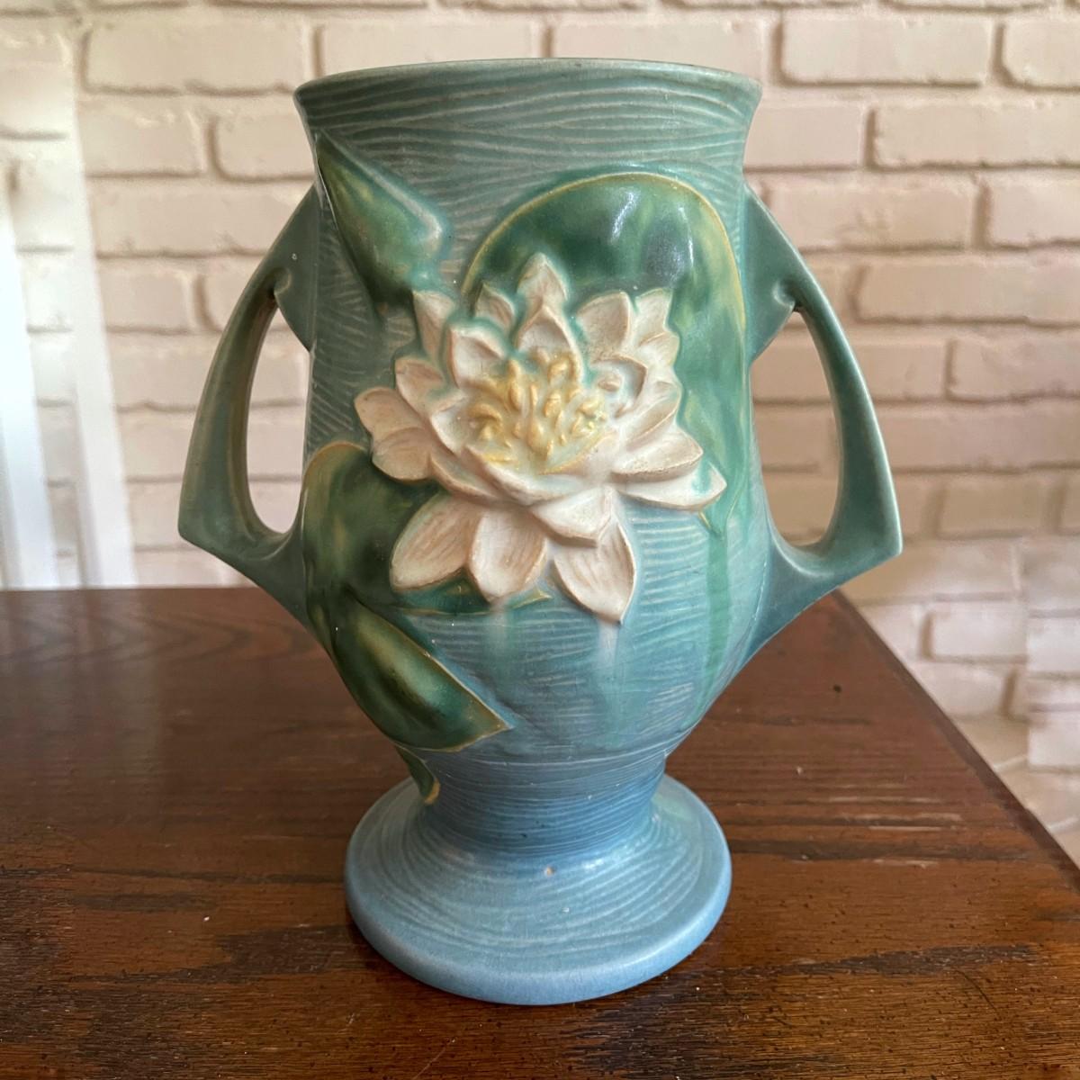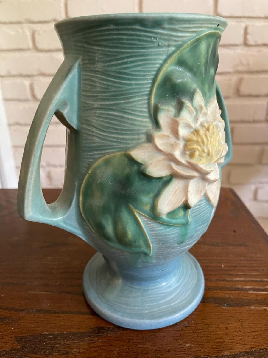 Vintage Roseville Pottery, 1943, Water Lily, Double handled vase, 78-9