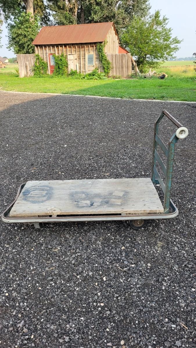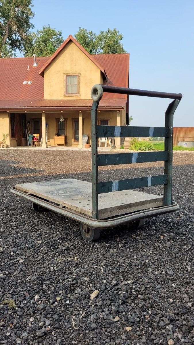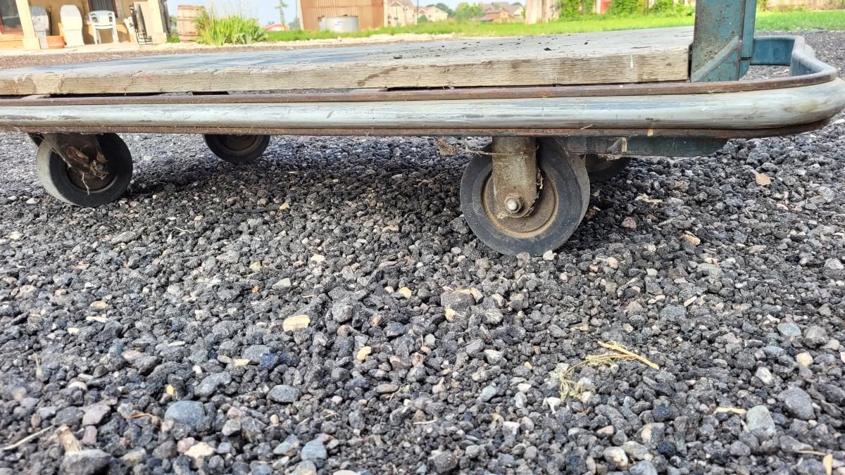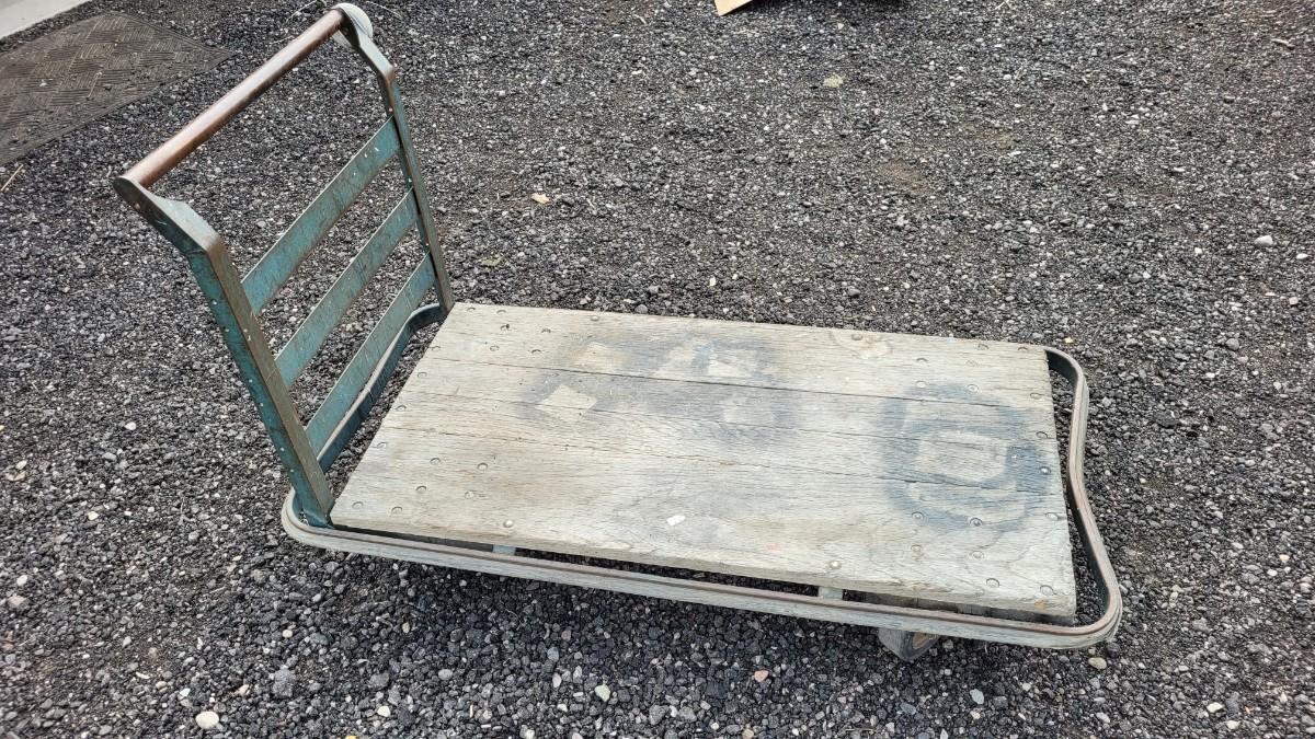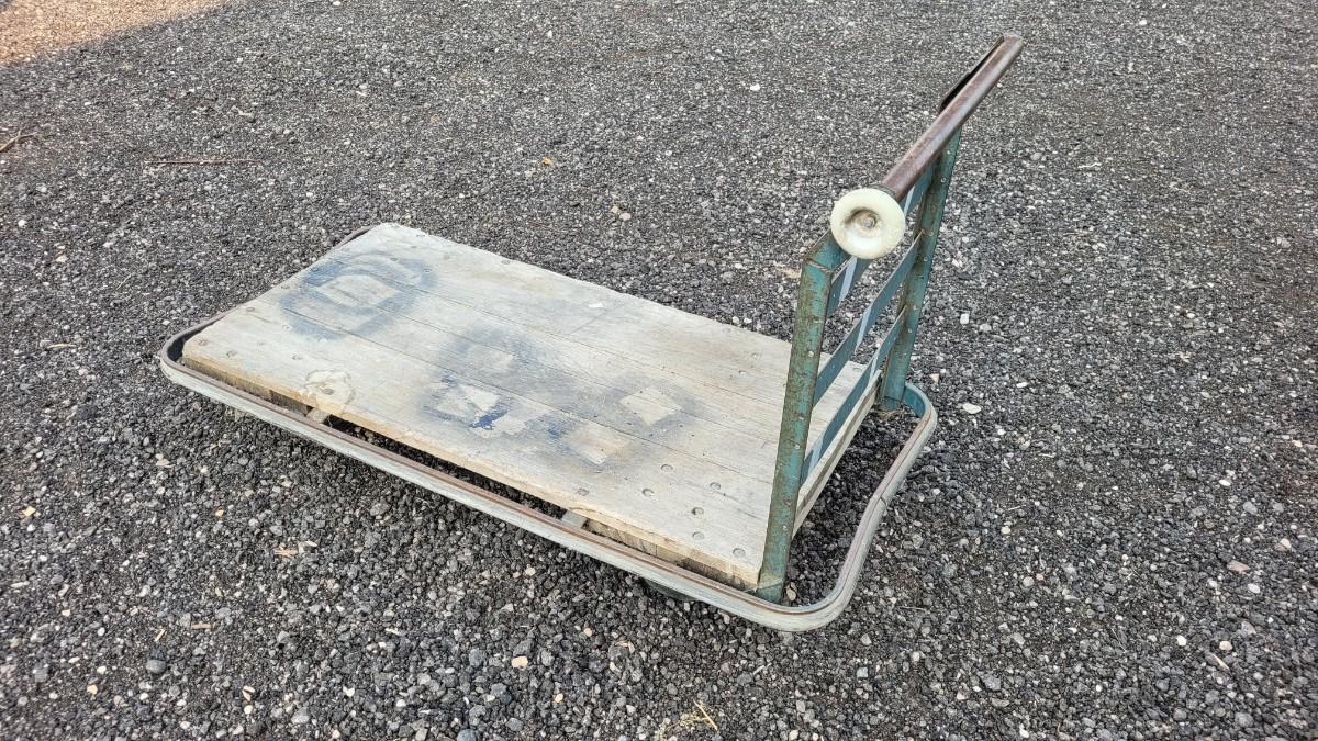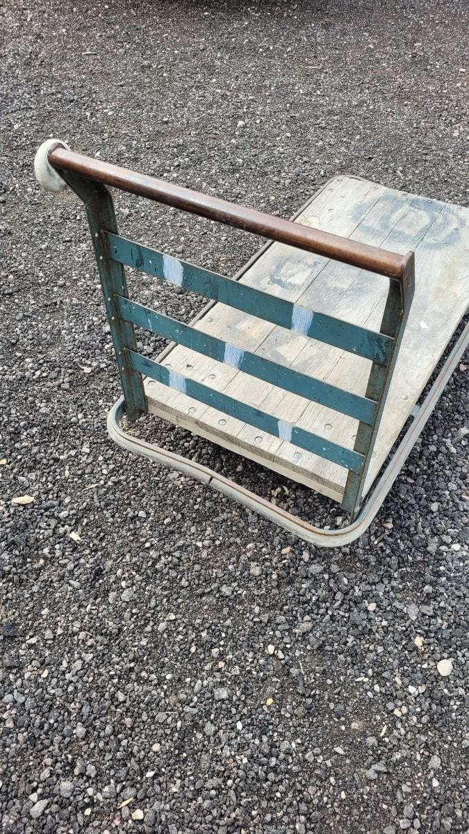 Lot 24: Vintage Industrial Rolling Cart w/ Original Wood Floor