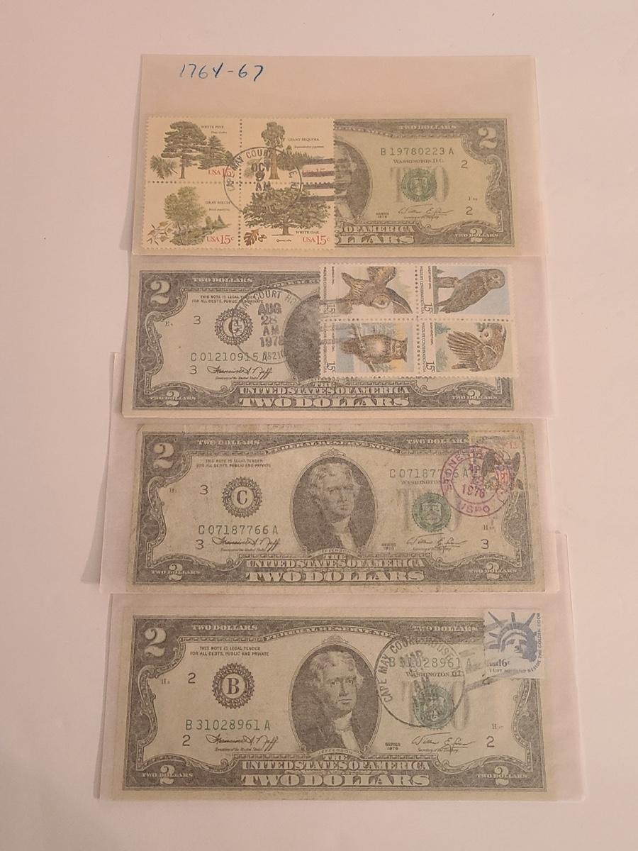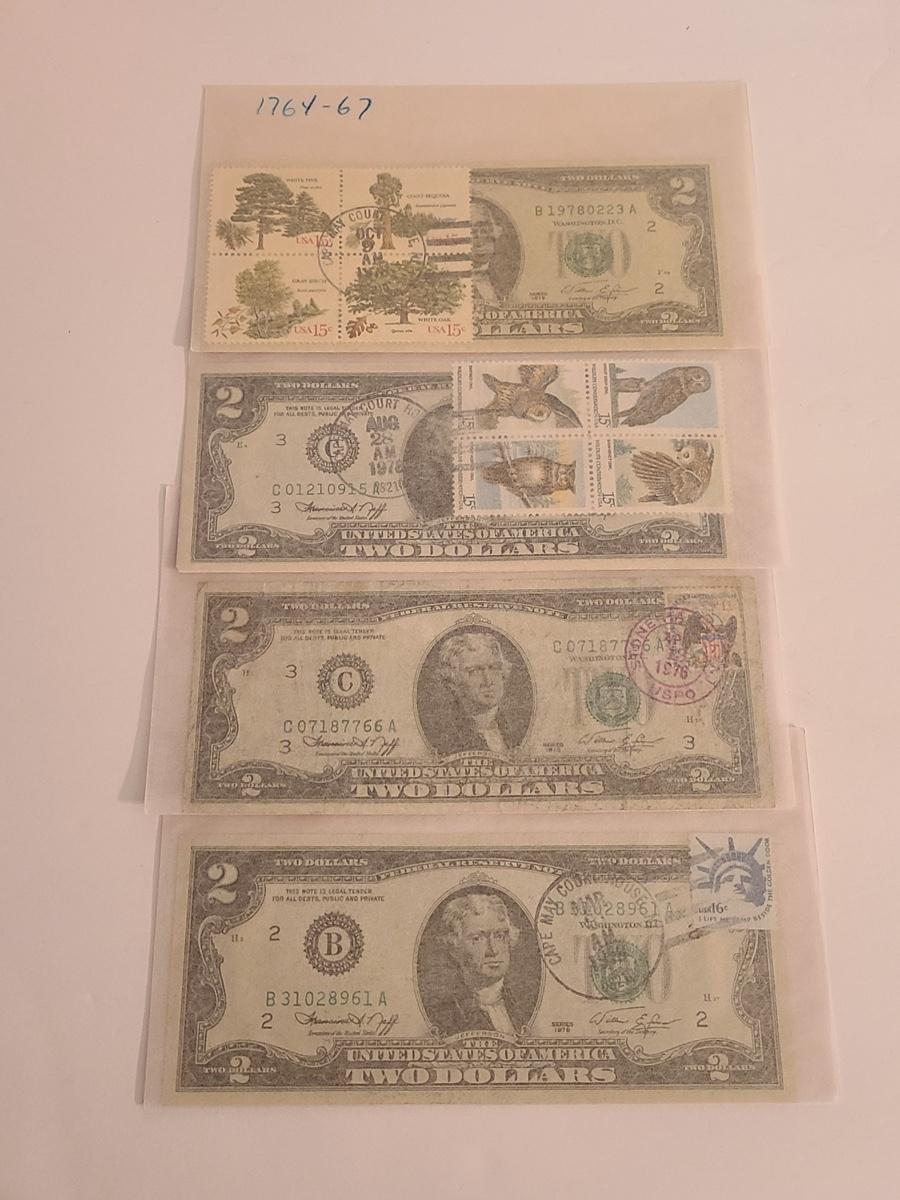 Lot 240: Four $2.00 Bills Stamped and Sealed