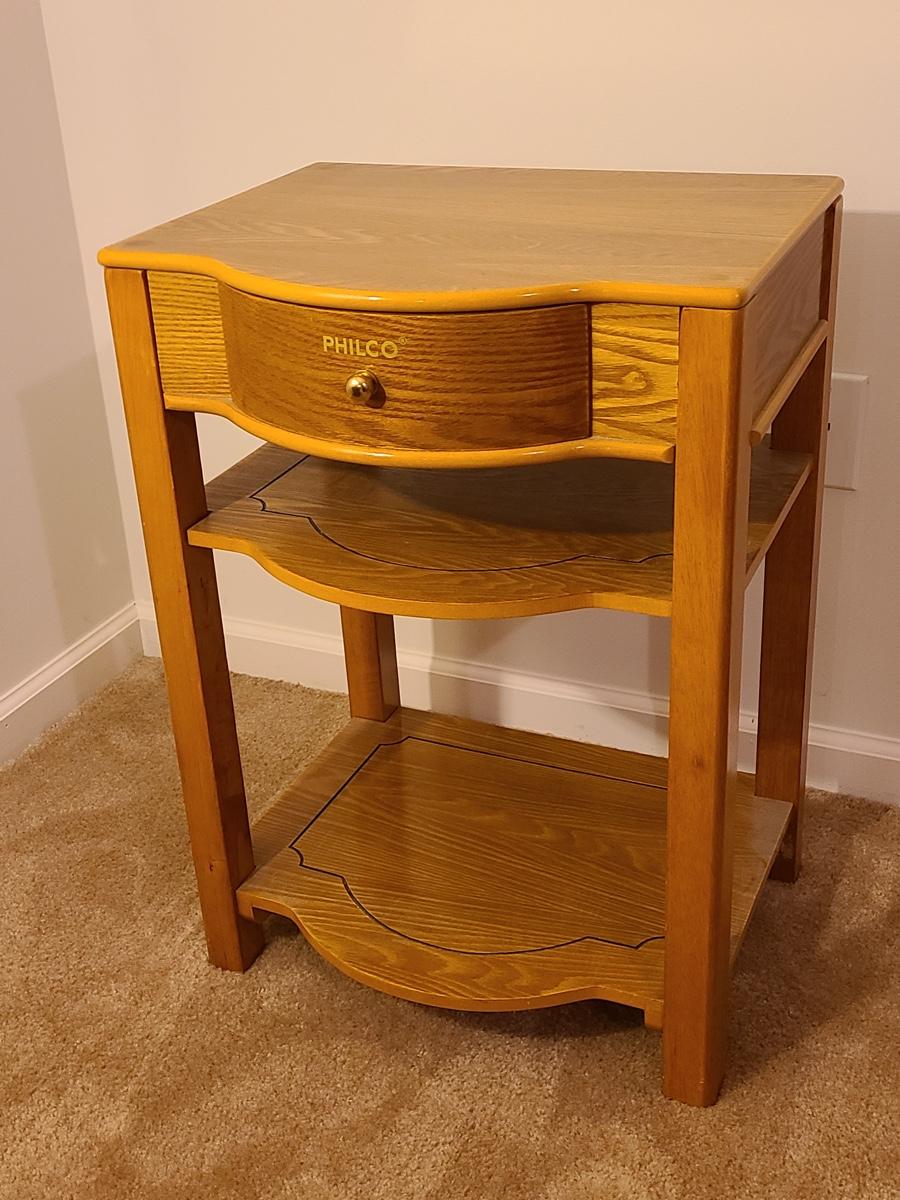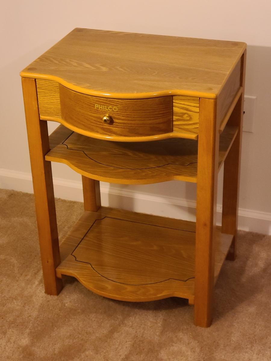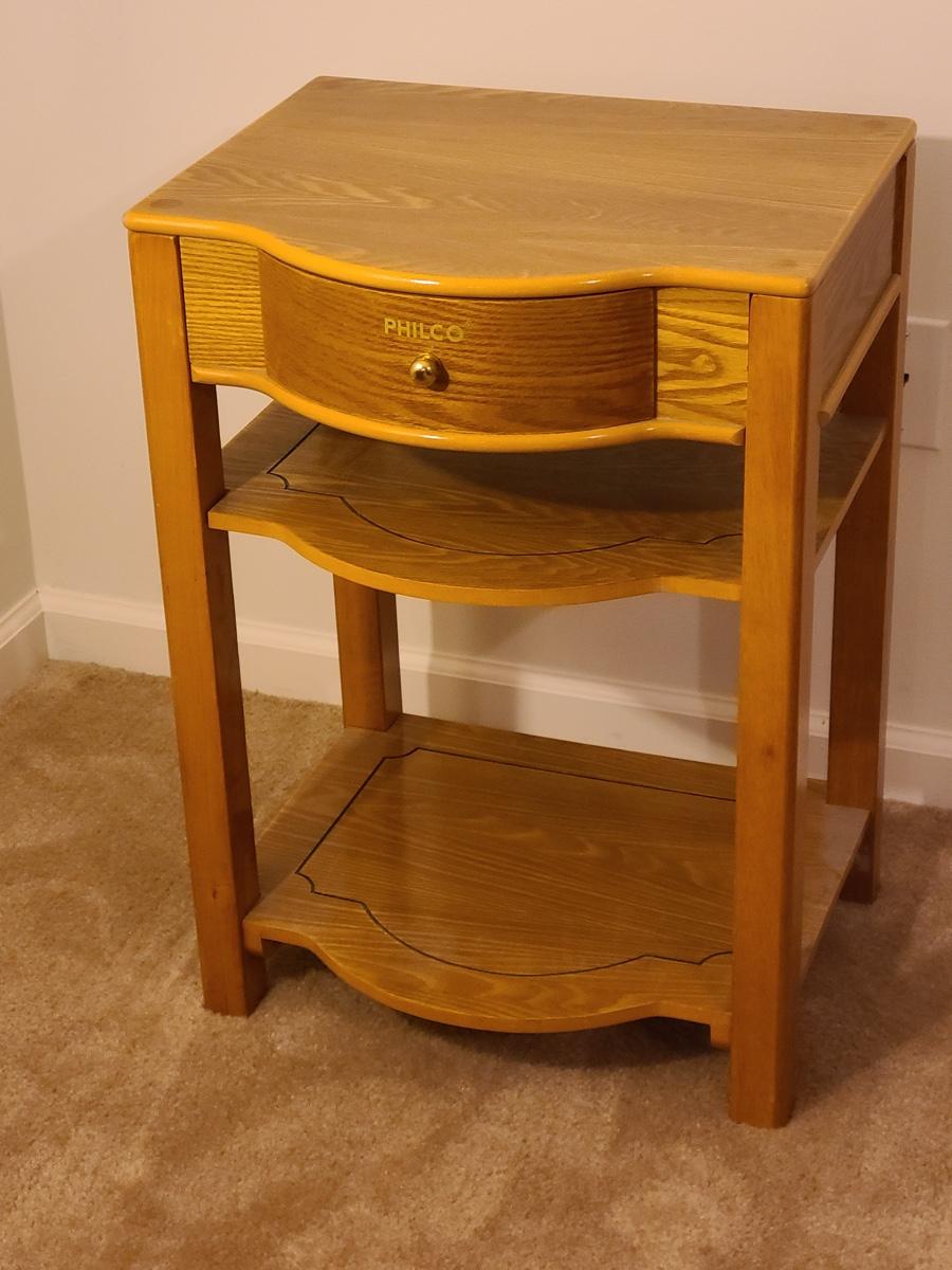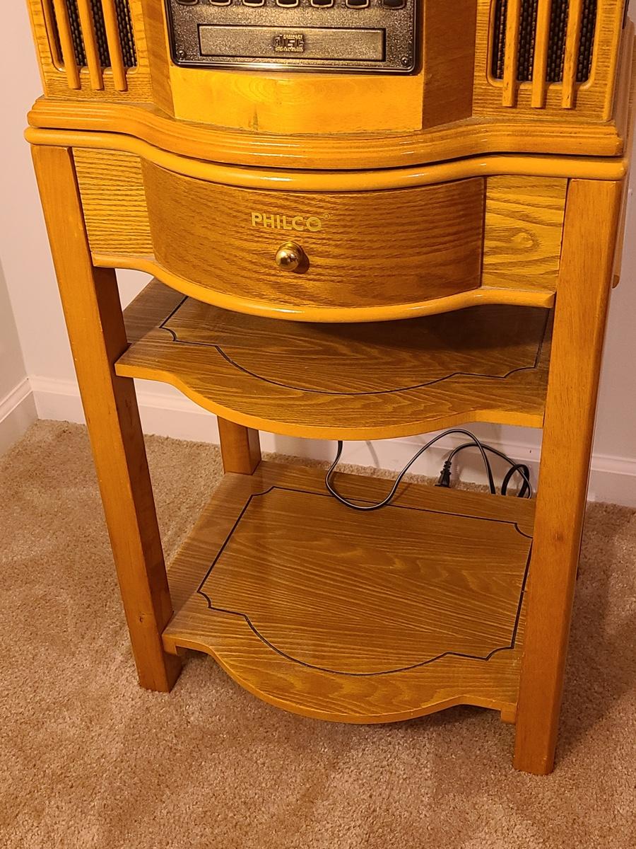 This is a nice table made for a Philco Radio. This does come with the radio shown, but at this time, only the CD player is working. Great for someone who knows how to tweak these! Please see all pictures as they are the best representation of the items. The pictures show condition, measurements if taken, and what is included in the lot. Due to the large amount that we photograph and the time frame, we are not always able to take measurements. All items unless noted, are pre-owned and have been used. If you purchased furniture, you must bring help. We do not allow one person to carry large furniture out on their own. Bring help, tools and a truck for the safety of our client’s homes, and your personal safety. Company policy. Thank you.