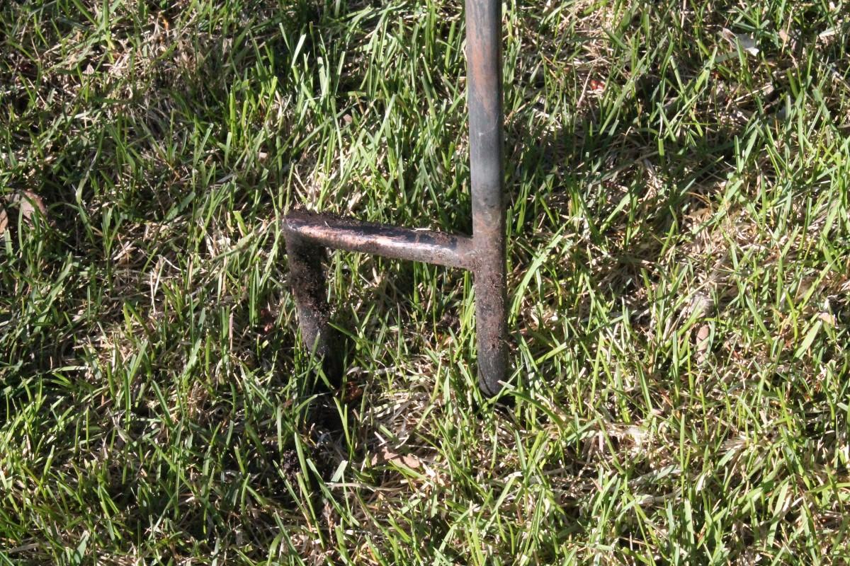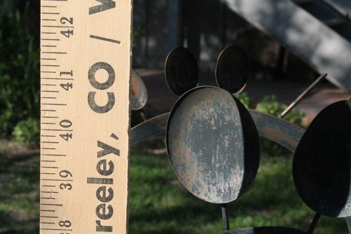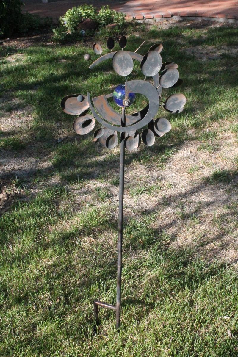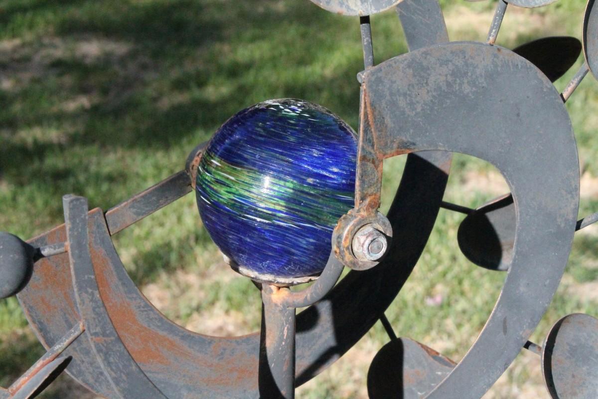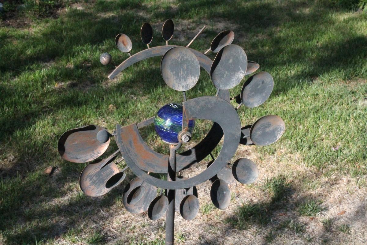 This outdoor windmill feature also shows a fancy sun gaze ball in the center.