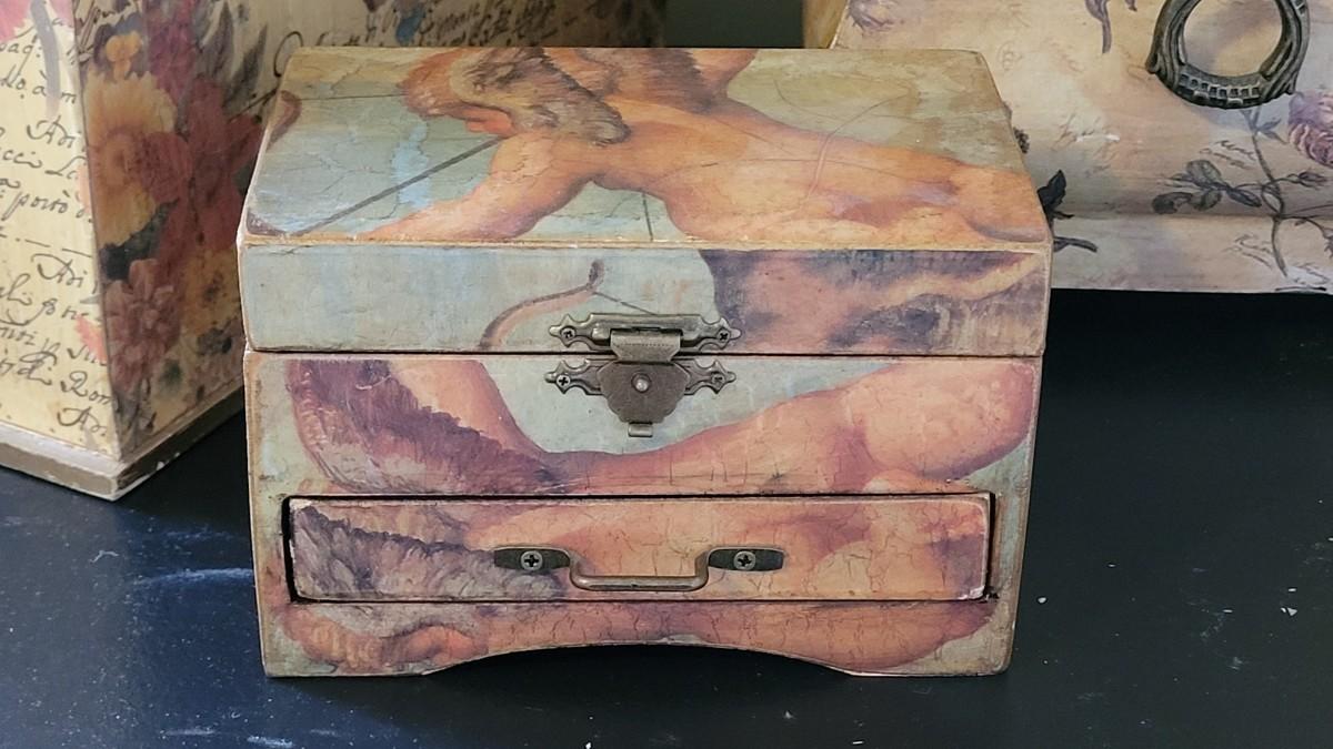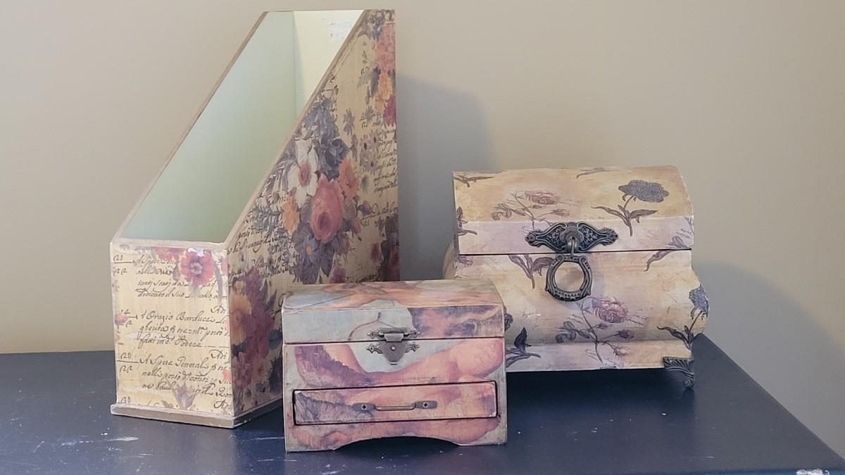 Lot 24: Vintage Decorative Trinket Boxes & Magazine/File Box