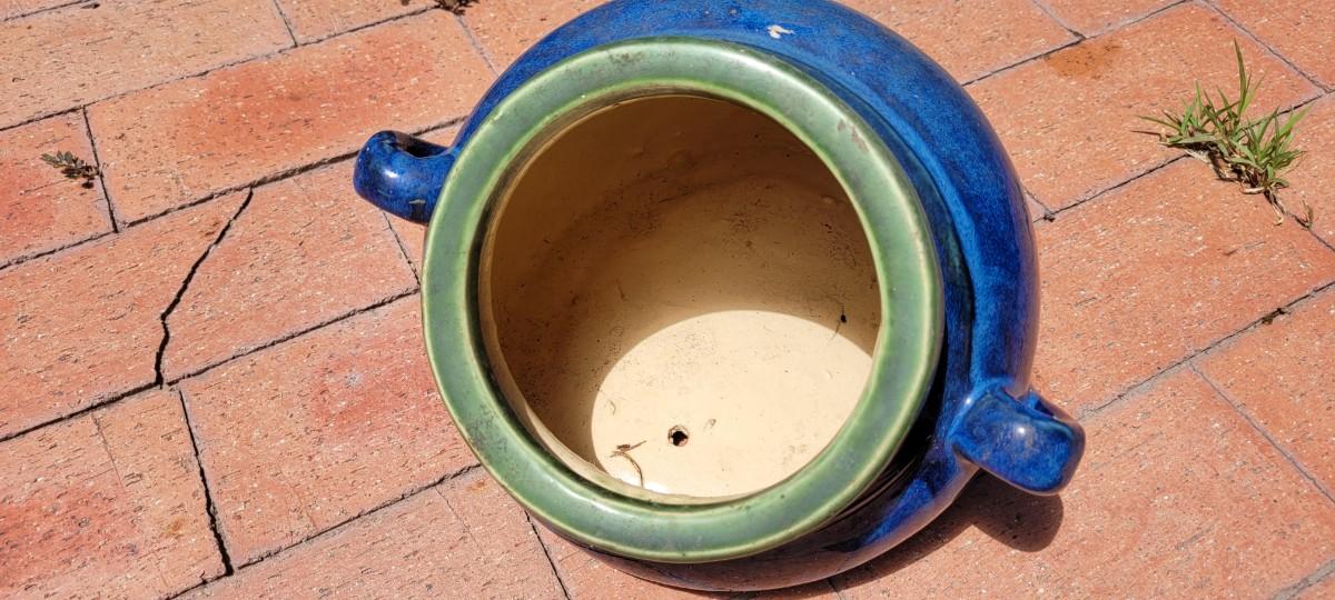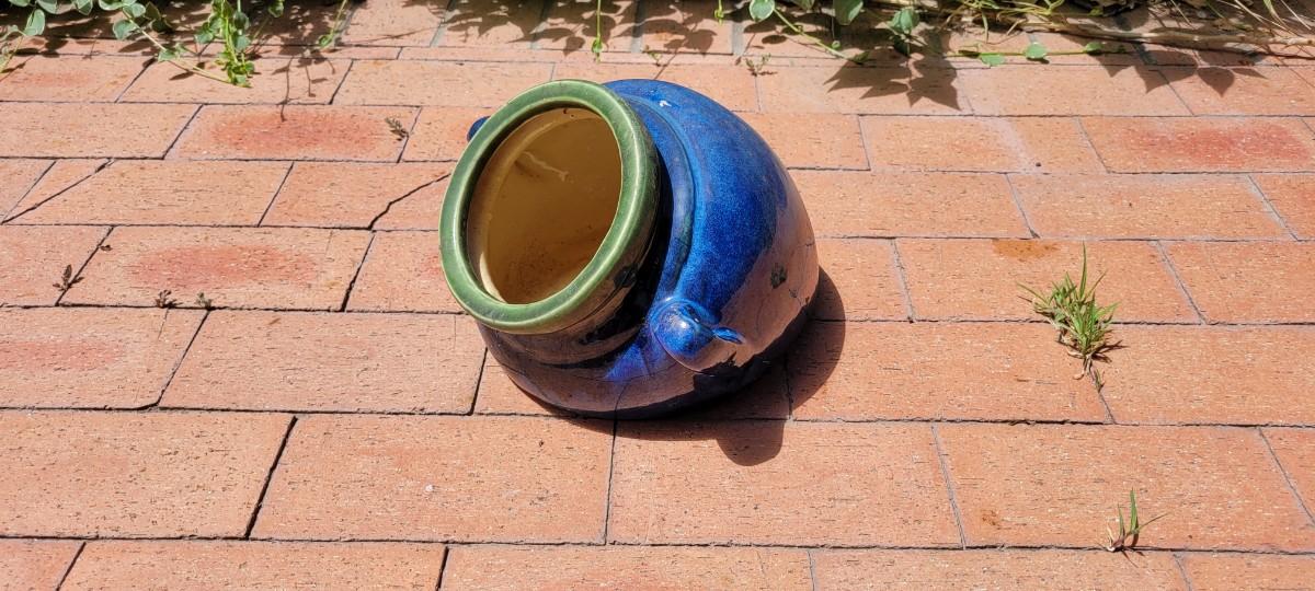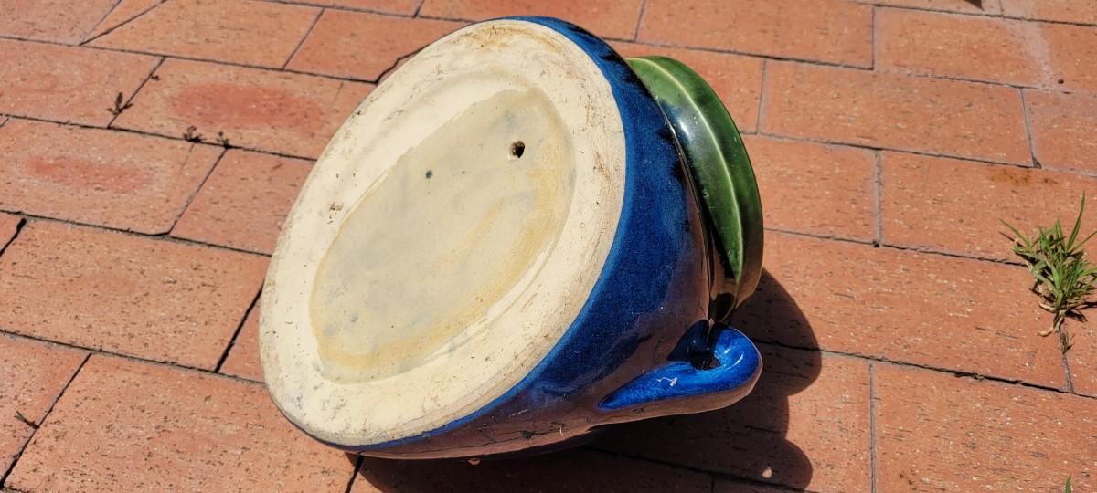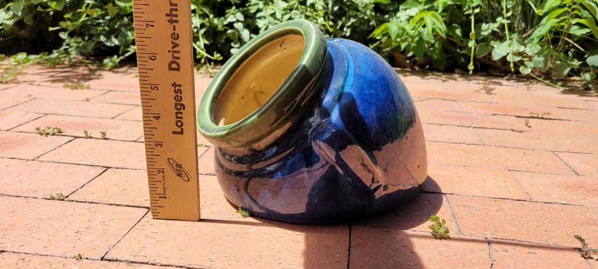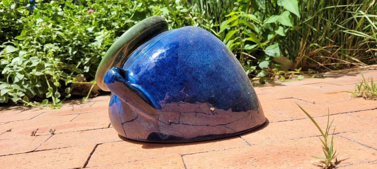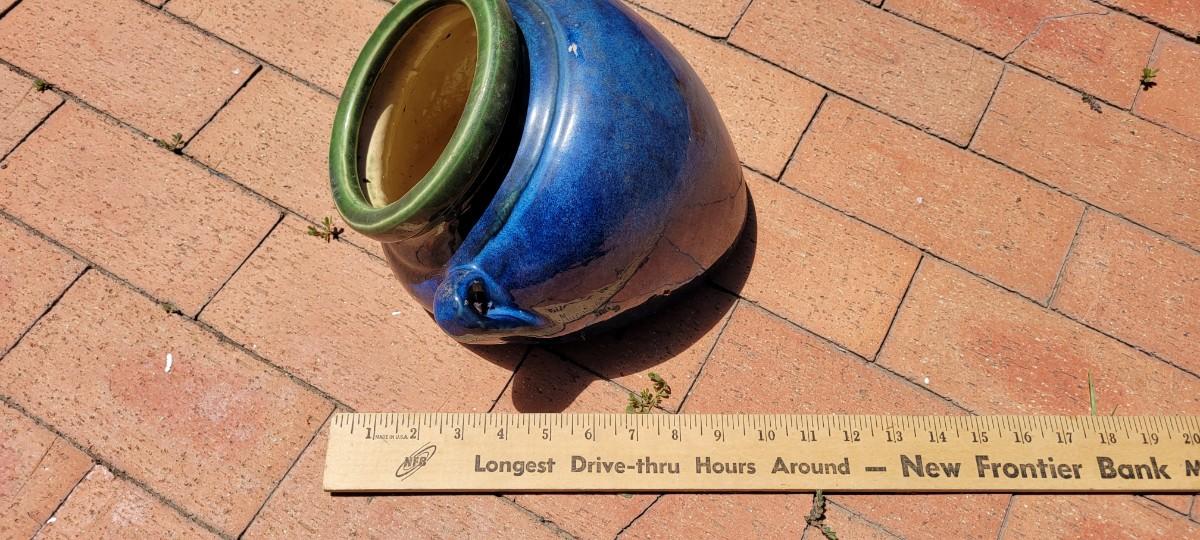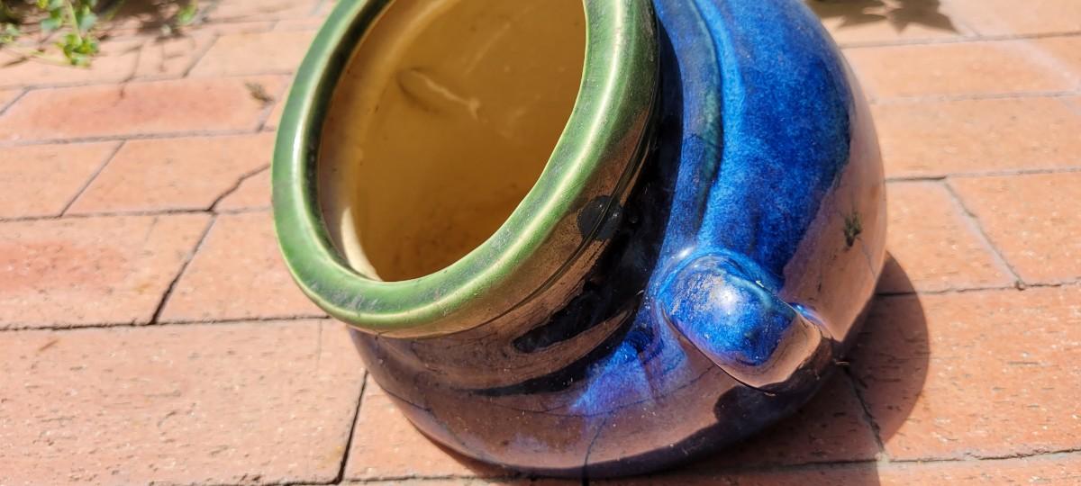 Lot 24: Ceramic Blue and Green Pottery Leaning Flower Pot