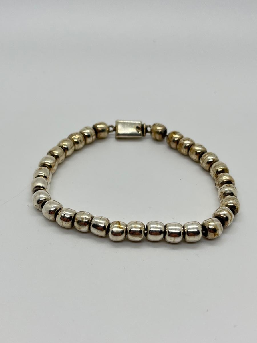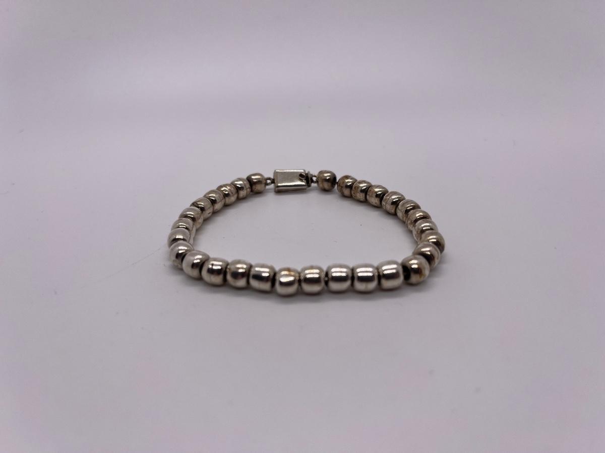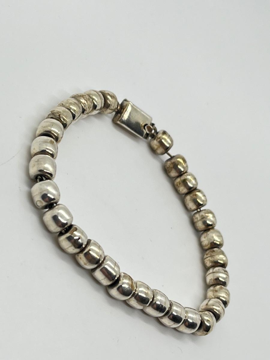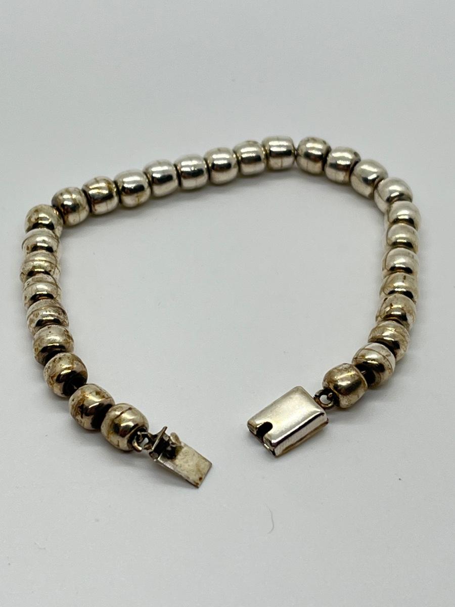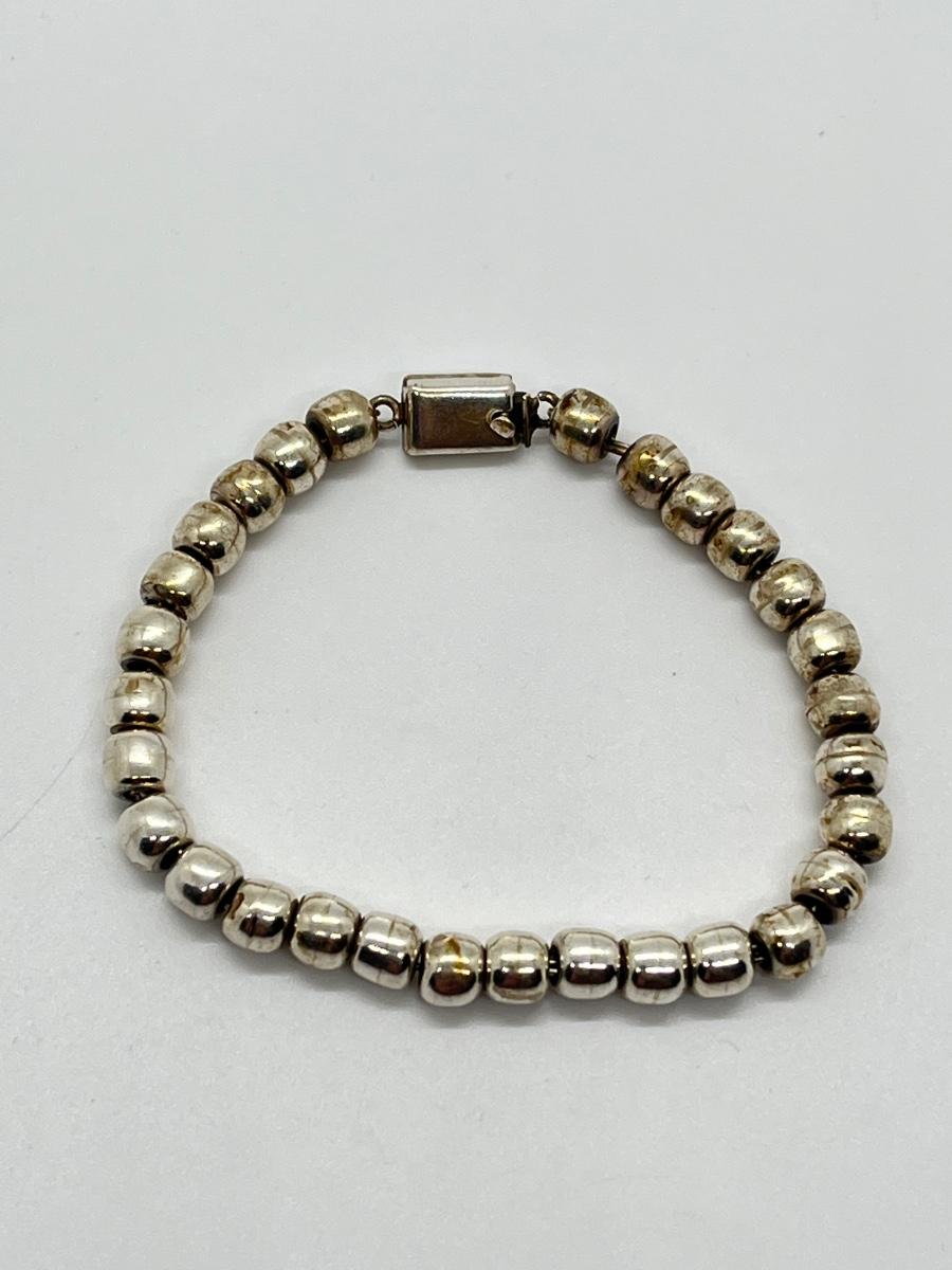 LOT 24: Vintage 7" Mexico 925 Silver Beaded Bracelet on Silver Chain