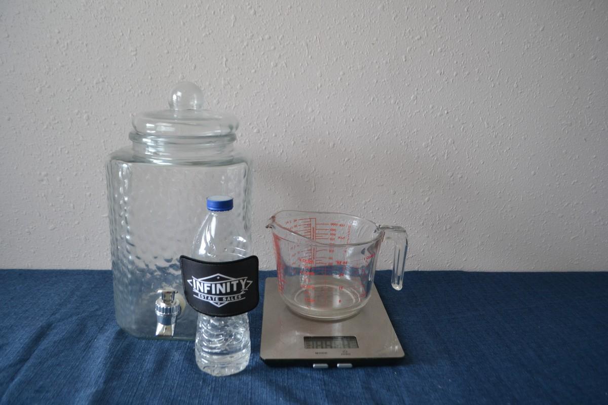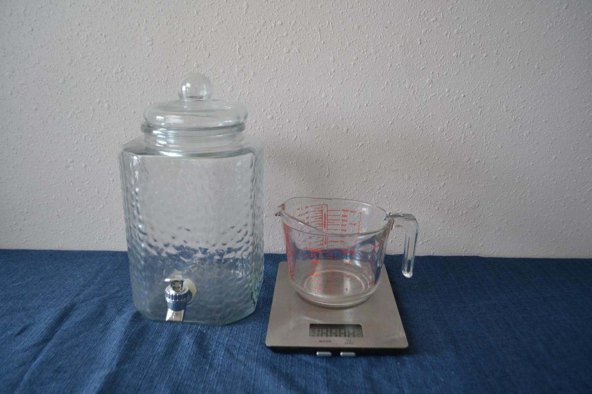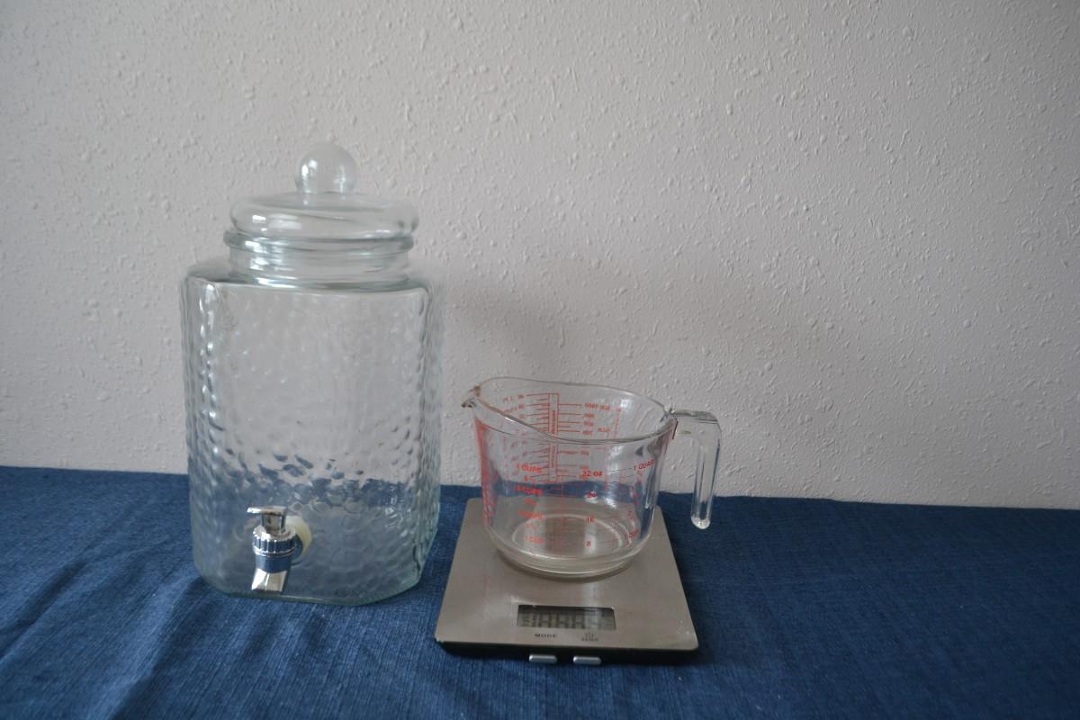 WATER DISPENSER, SCALE AND MEASURING CUP
