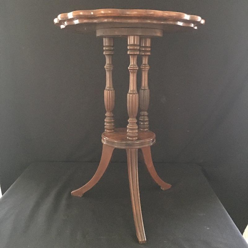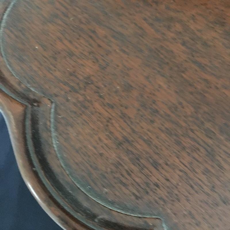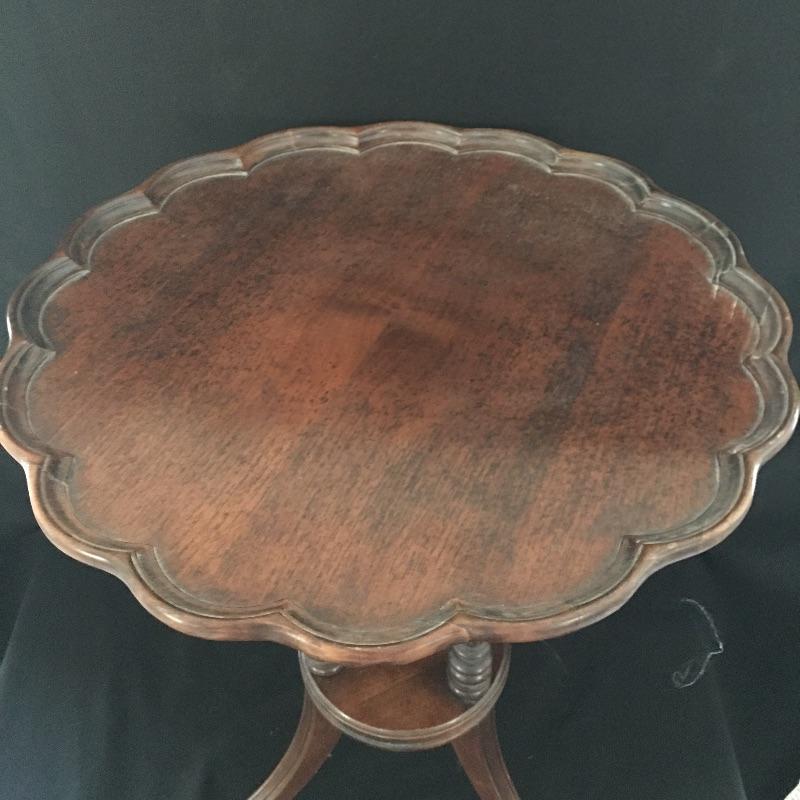 Antique scalloped edge table has withstood the test of time and come out looking amazing. Don’t miss out on this beautiful piece of craftsmanship.