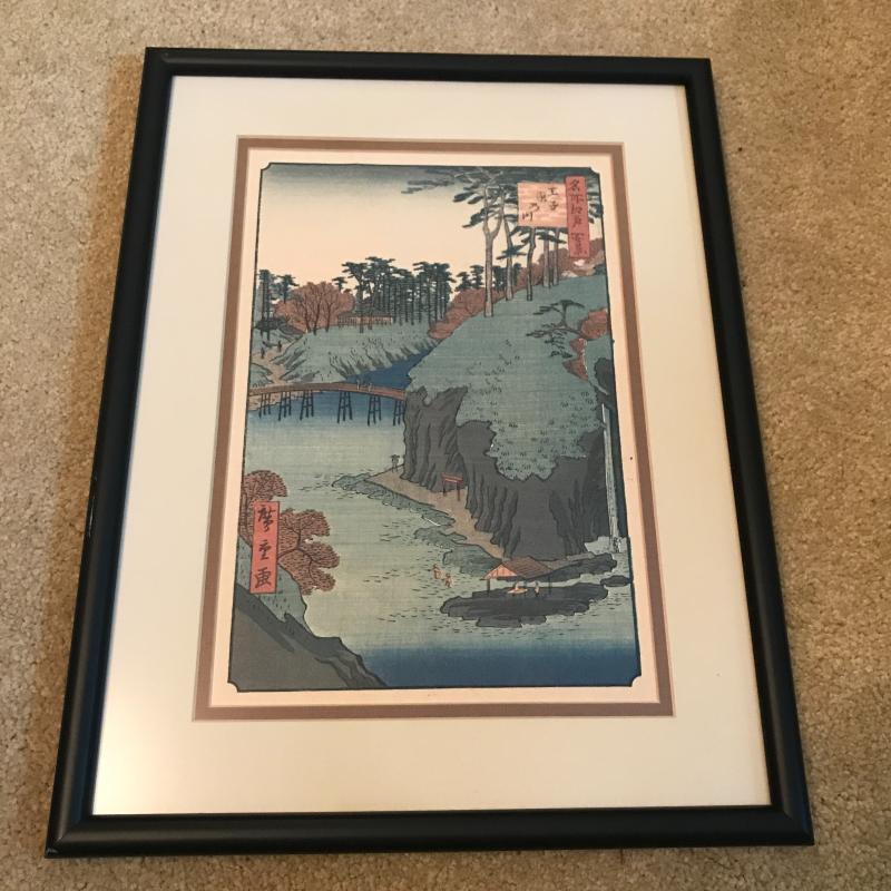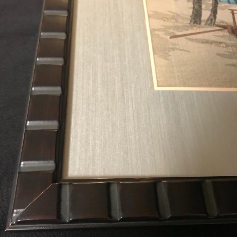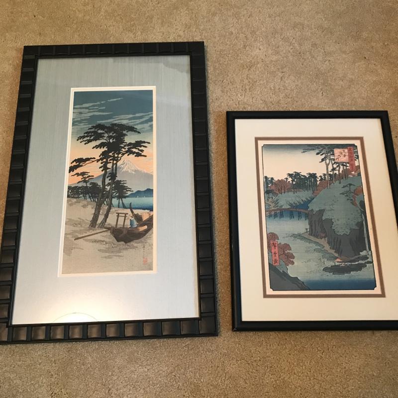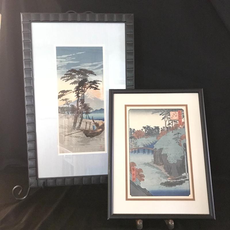 Two nicely framed scenes with beautiful colors. Larger one is possibly a wood block but can not confirm. Frame is 15”x23” and in excellent shape. The smaller scene has edges that appear to have been folded prior to framing. Local pick up or shipping available, Please call UPS for shipping quote prior to bidding as art can be costly to ship.