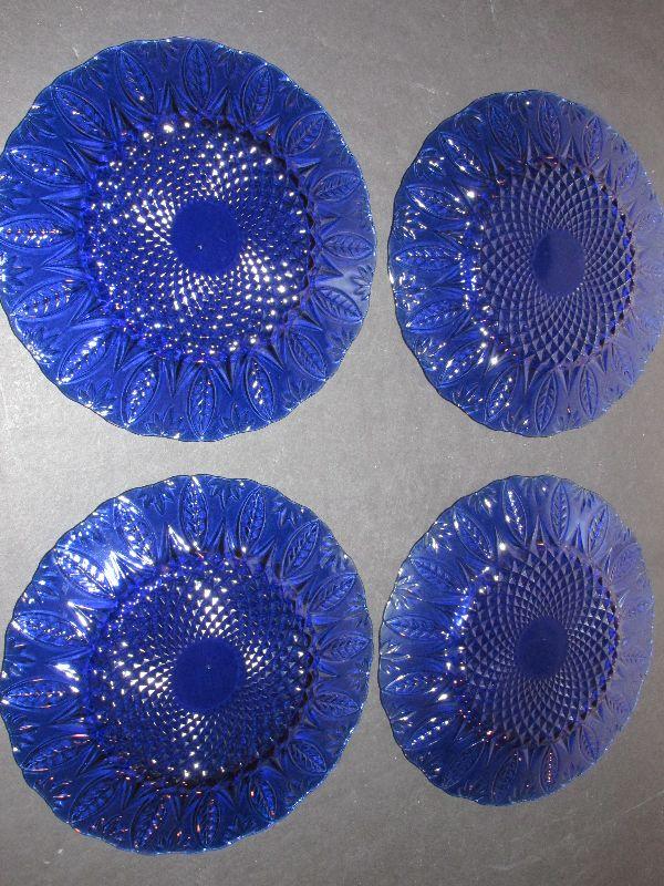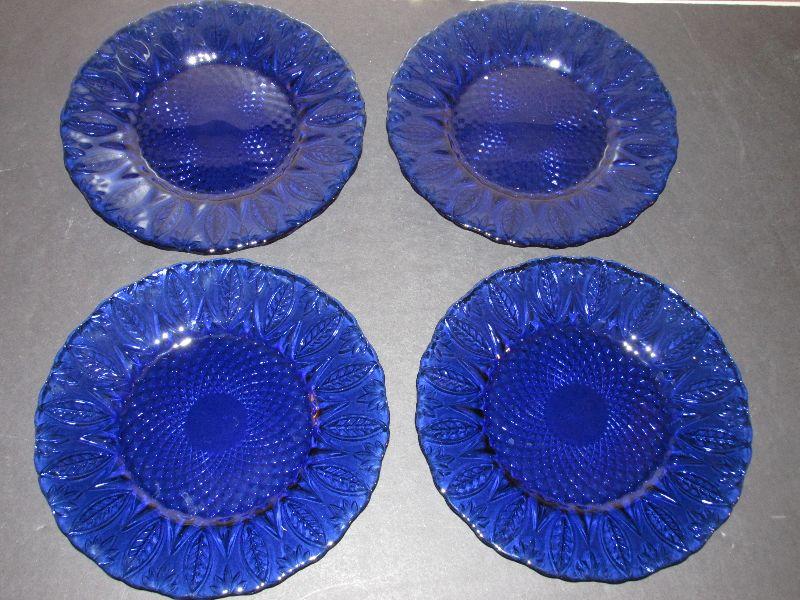 4 Blue Avon Royal Sapphire glass plates. Made in France. Like new. No chips or cracks.