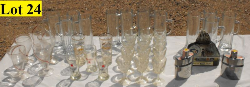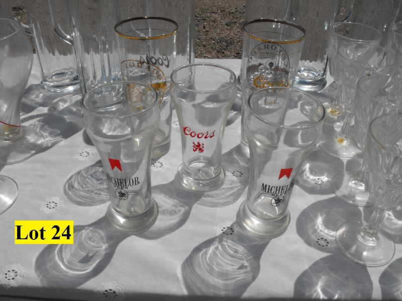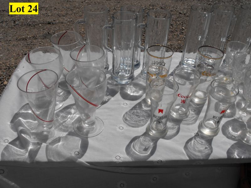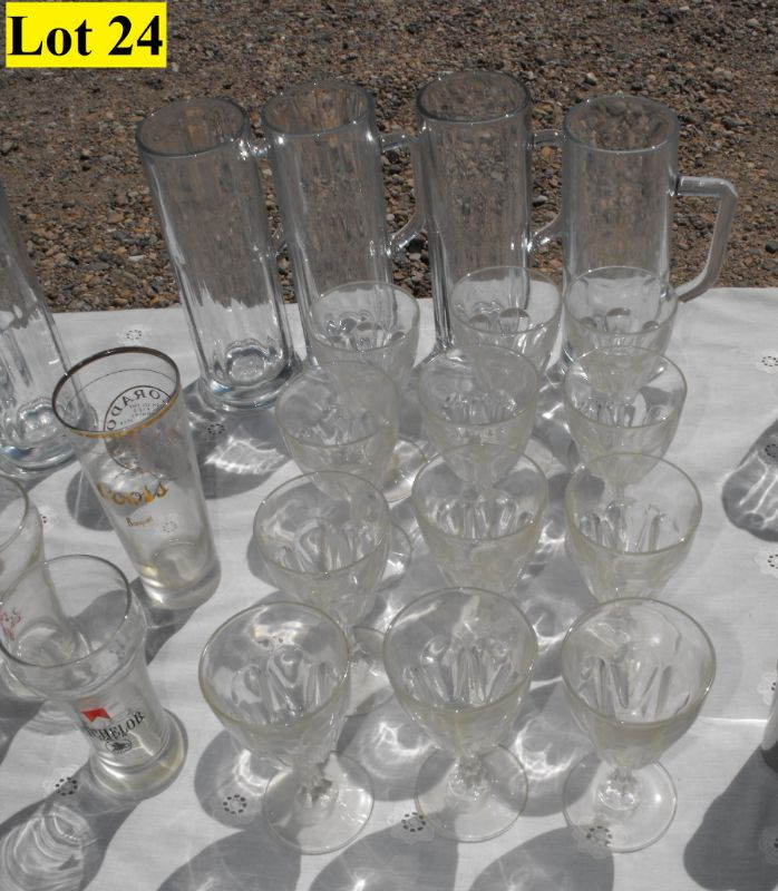 9 Wine Glasses, 12 Tall Glass Handled Beer Mugs