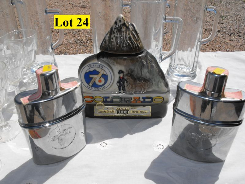 Colorado Centennial Beam Bottle and 2 Metal Flasks