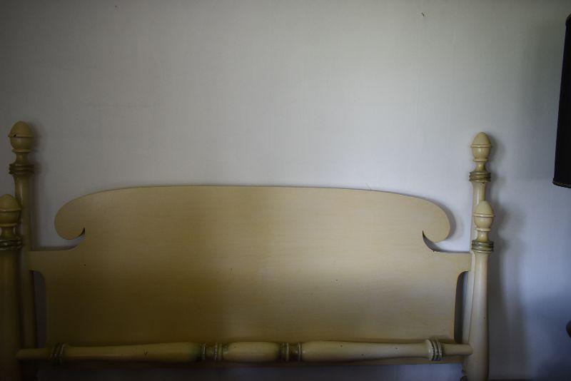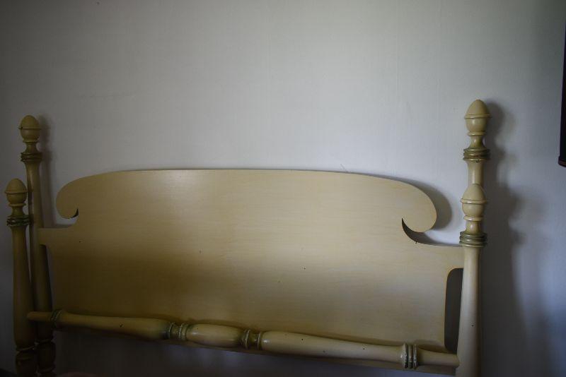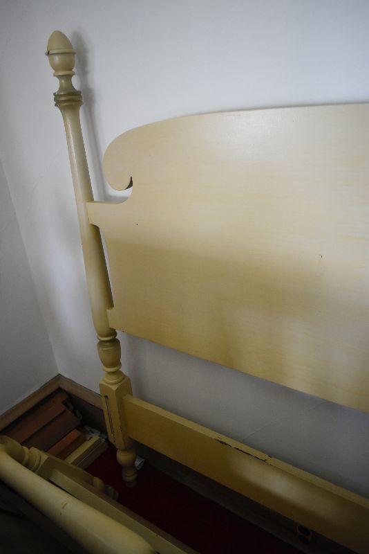 Wooden headboard and footboard that matches bureau and vanity. Bring help to move from second floor.