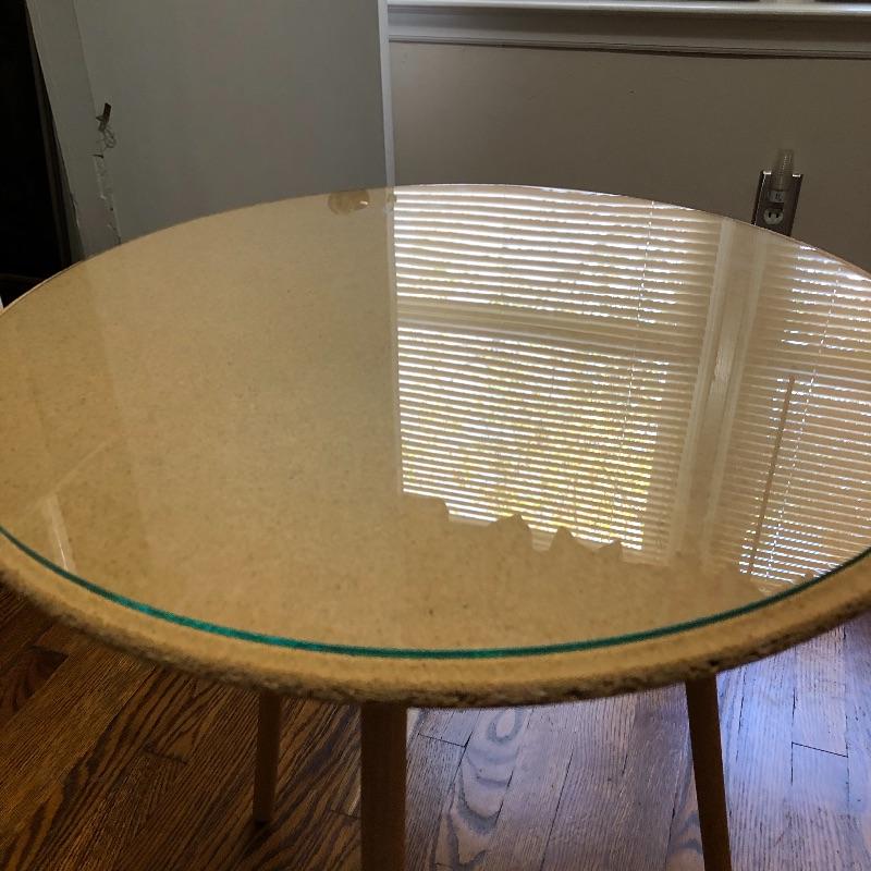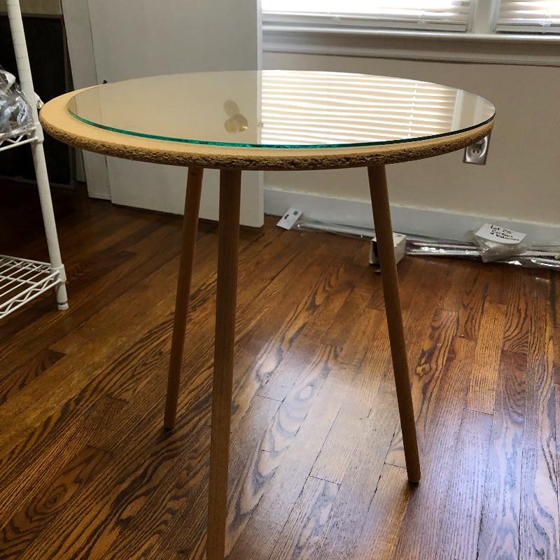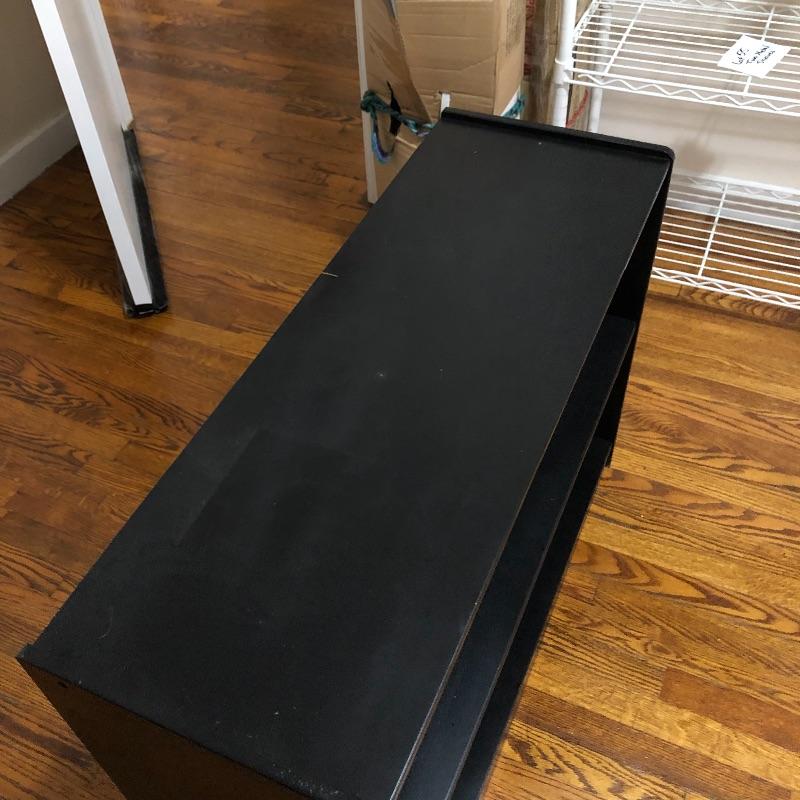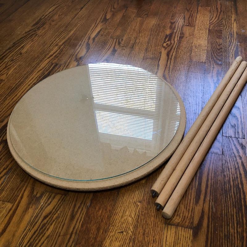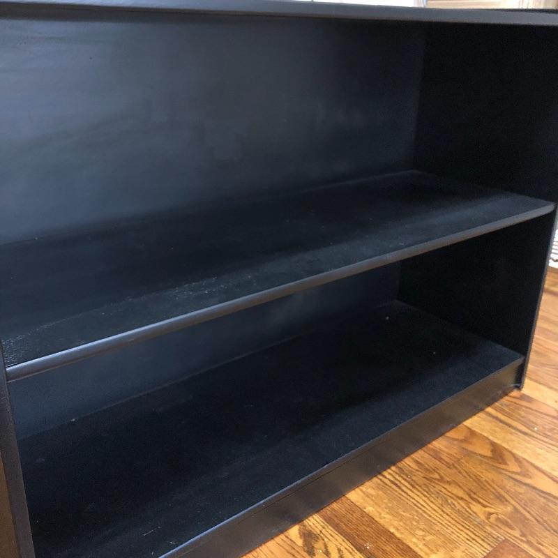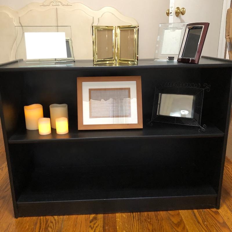 This lot contains a black shelf (36” x 12.5” x 26”) in great condition. It is wooden and appears to have been spray painted black. This lot also contains an unassembled circular table, with a glass top. It is very easy to assemble, as the legs just need to be screwed in. It also comes with four electric candles, one of which needs new batteries and a never used friendship candle holder, appearing to be some sort of cast resin material. Lastly, it comes with seven picture frames of varying sizes. Local pickup only.