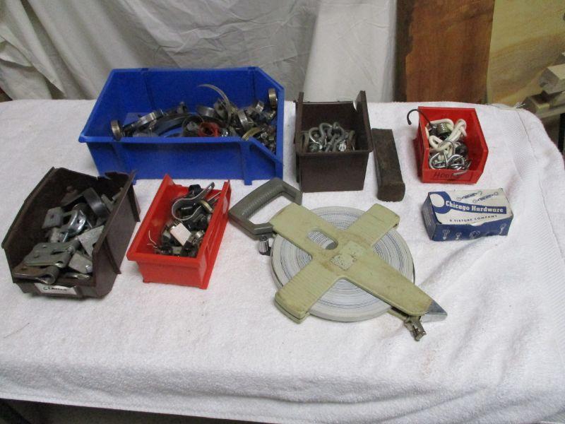 Lot 24 - Box Lot Of Clamps Hooks Tape Measure