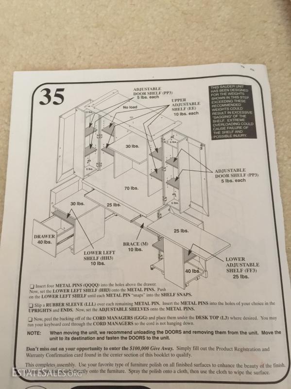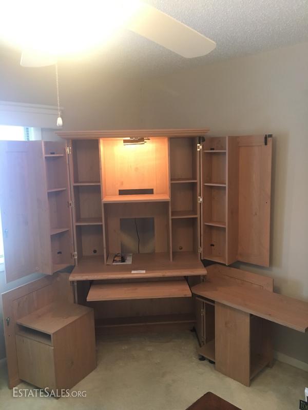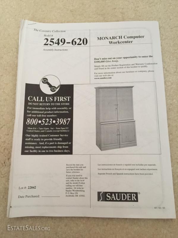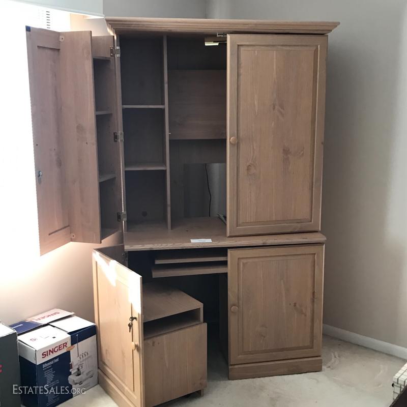 Lot 24: Sauder, Conventry Collection, Monarch Computer Workcenter. Large Hide-away style armoire.