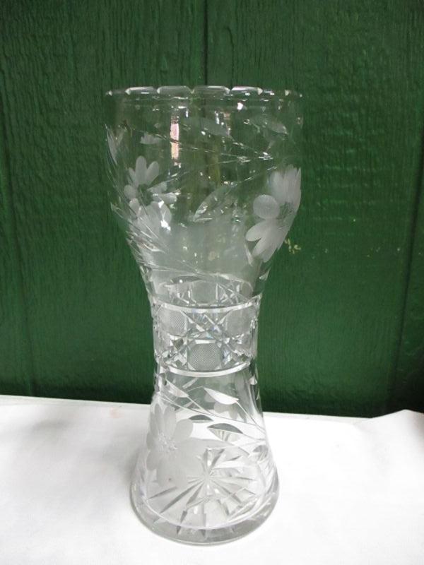 Crystal vase approx 12" tall