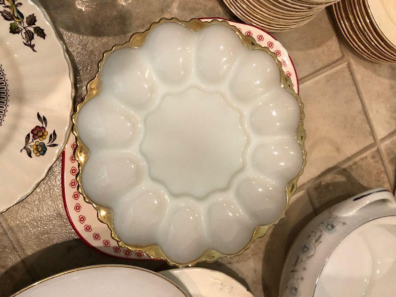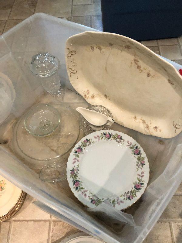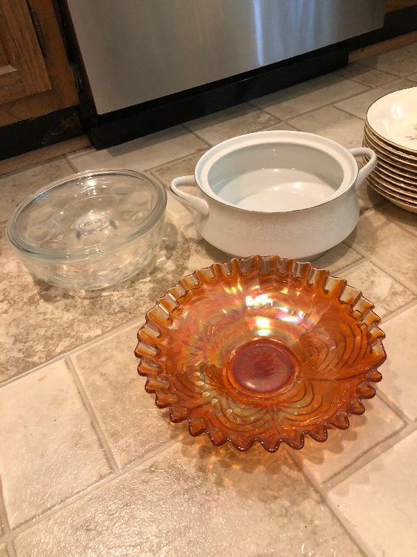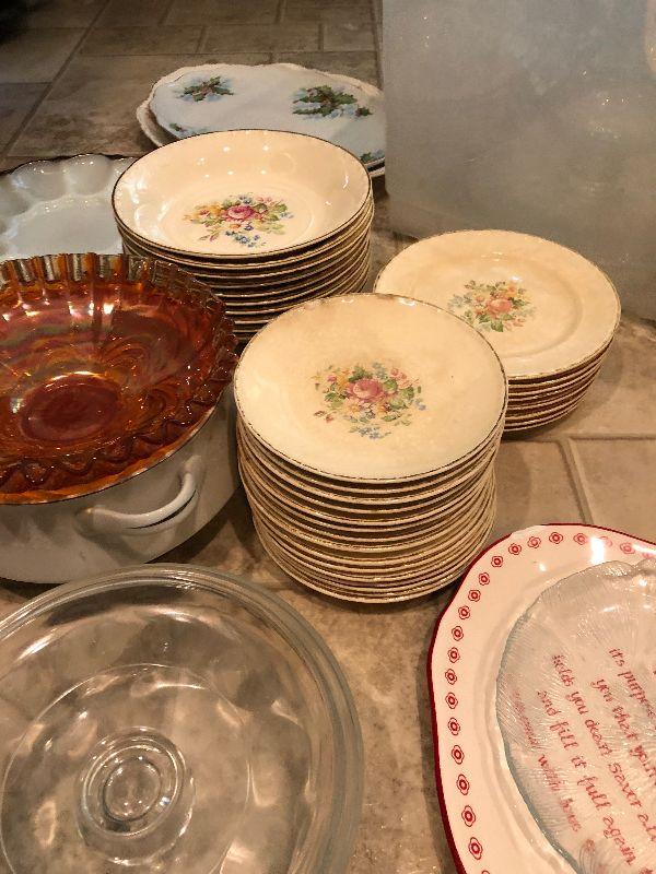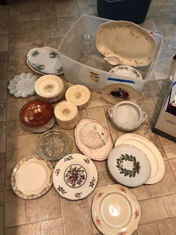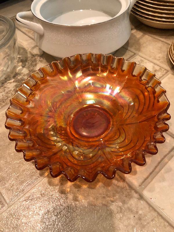 Vintage fine china and Carnival glass and other miscellaneous items.