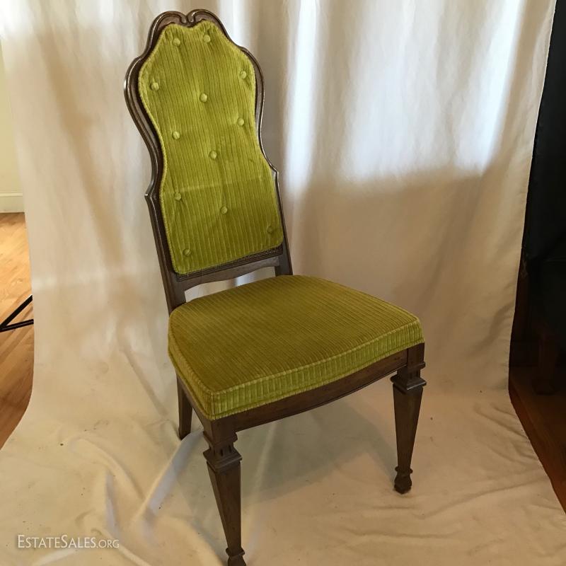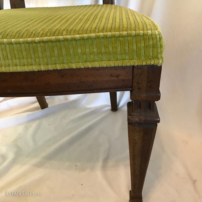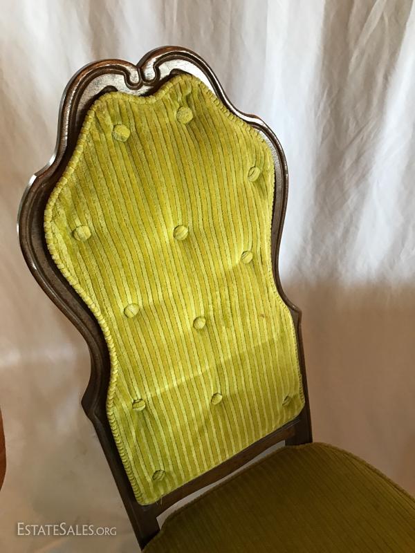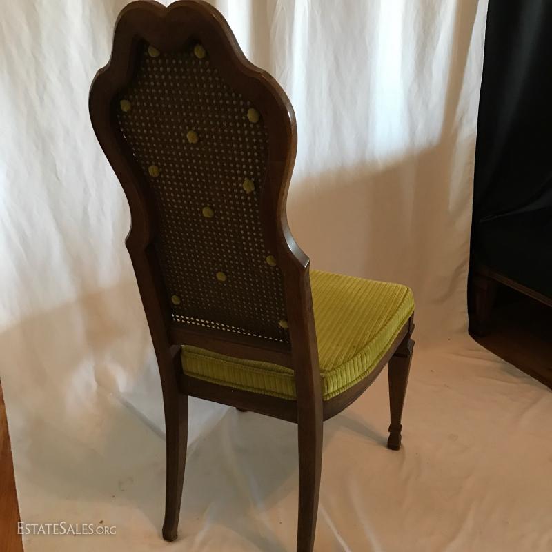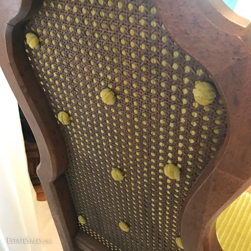 Green Fabric on Backs of Chairs and Cane underneath.