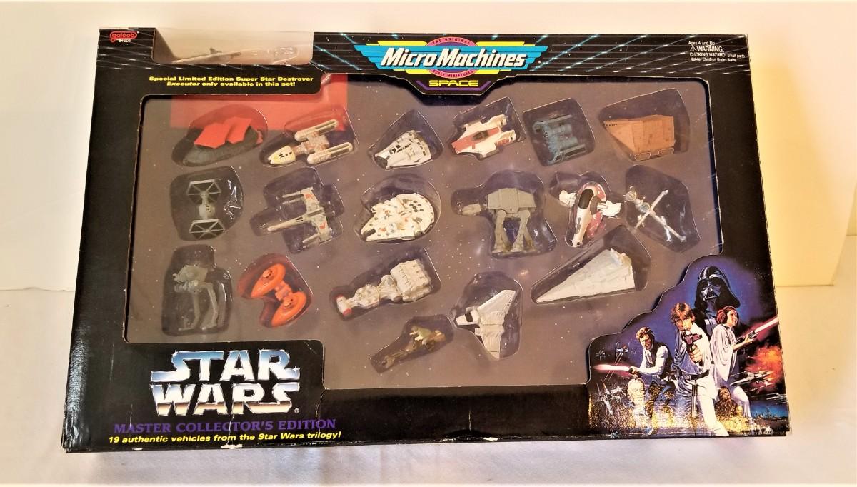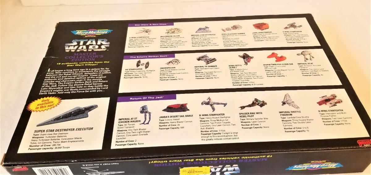 This set has been opened, but it's all there in the original box. Star Wars micro machines and includes a piece that you could purchase nowhere else. 19 pieces in all. Produced in GALOOB in 1994.