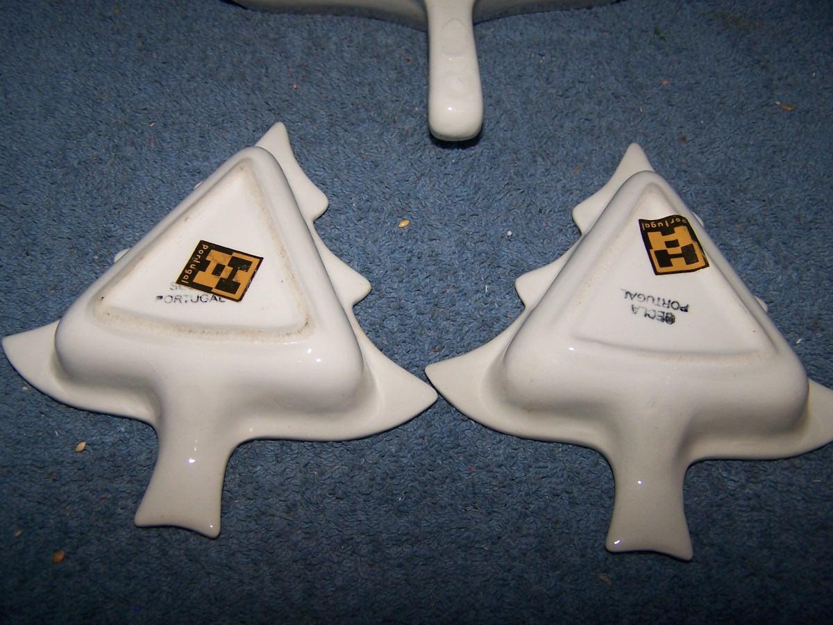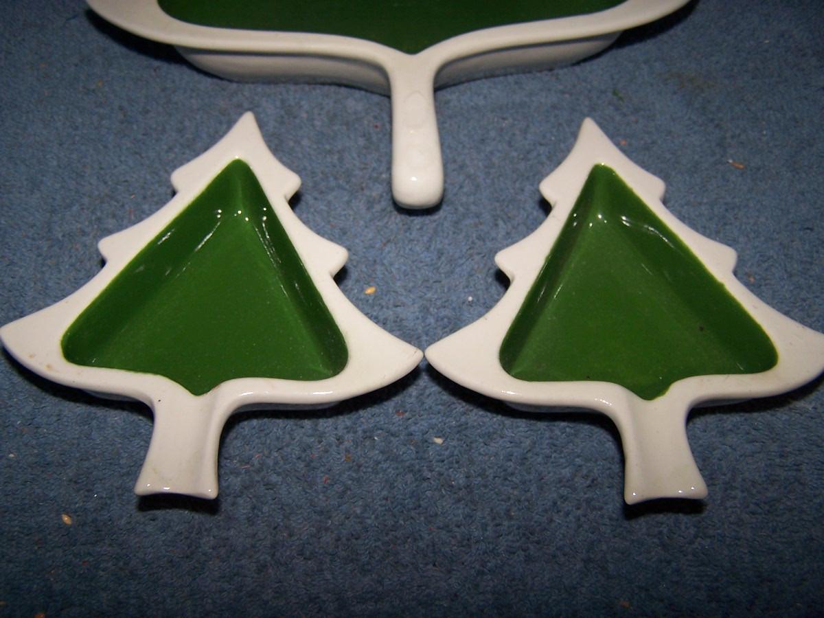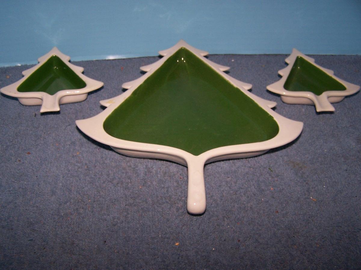 THESE ARE GRAND VINTAGE MCM CHRISTMAS TREE DISHES BY HOLT HOWARD!!! SMALL ONES ARE 5'' TALL.. LIGHT WEAR, AND SOME WEIRD GLAZING..