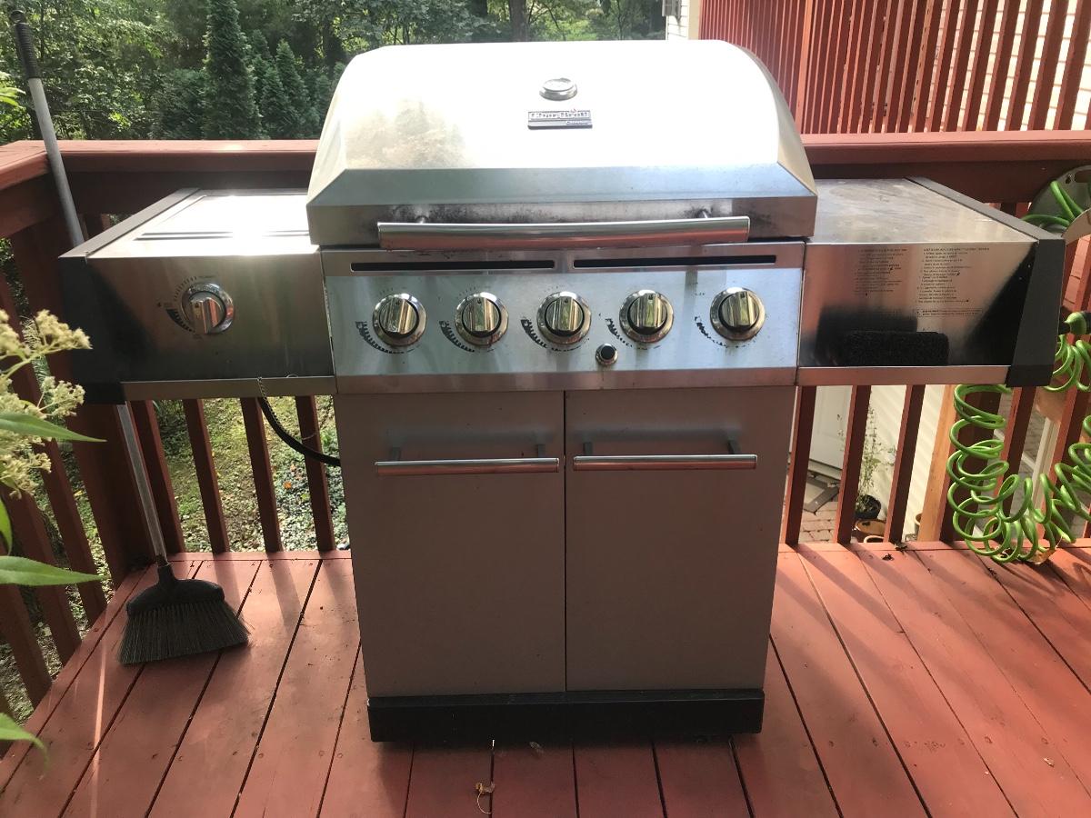 A Char Broil gas grill with side cook top. Cooking basket and propane tank are included. Igniter does not work, and grill needs new burners. Please see all pictures as they are the best representation of the items. The pictures show condition, measurements if taken, and what is included in the lot. Due to the large amount that we photograph and the time frame, we are not always able to take measurements. All items unless noted, are pre-owned and have been used. If you purchased furniture, you must bring help. We do not allow one person to carry large furniture out on their own. Bring help, tools and a truck for the safety of our client’s homes, and your personal safety. Company policy. Thank you.