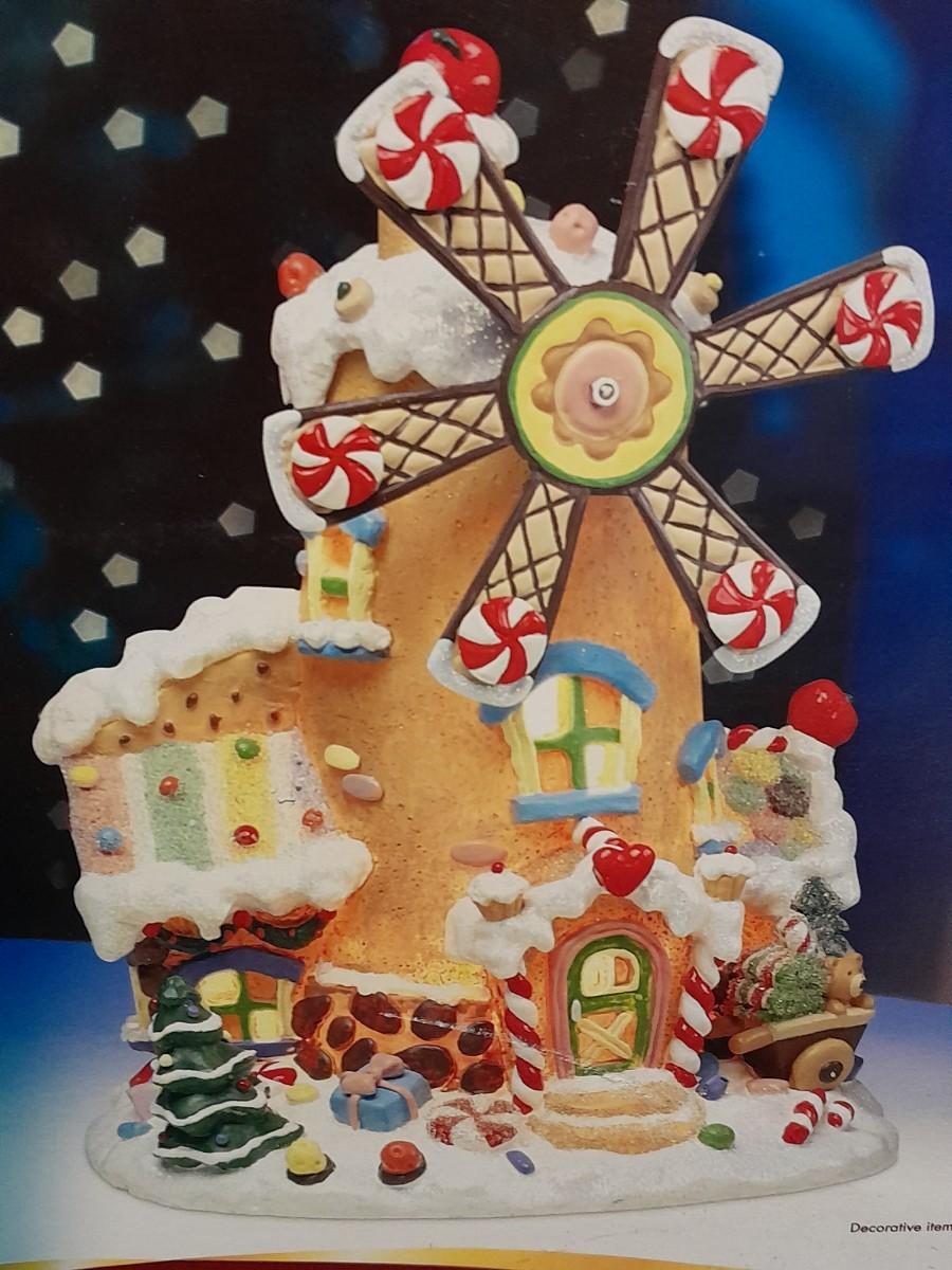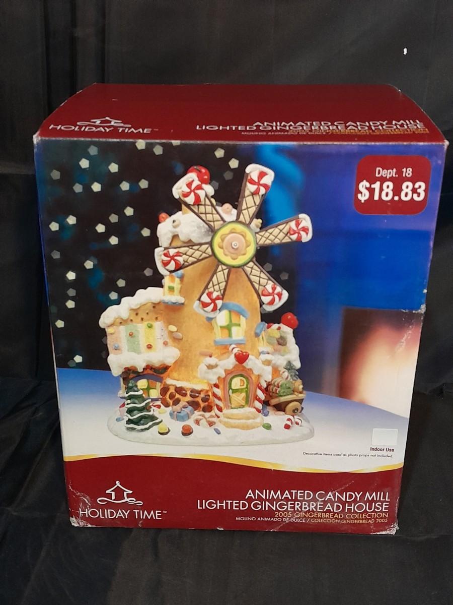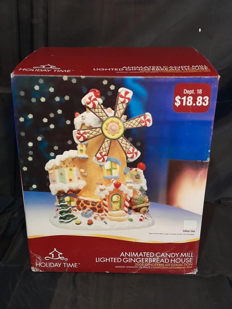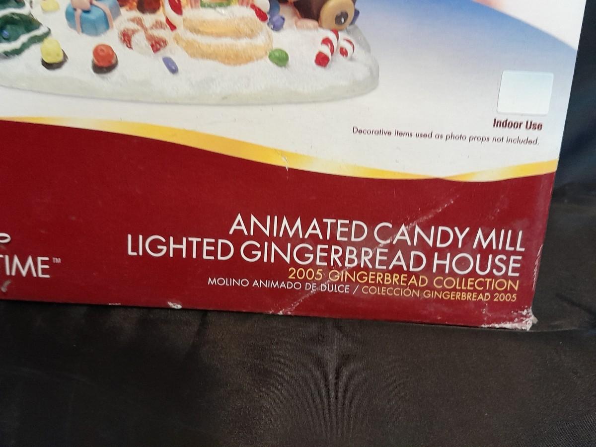 LOT 24 HOLIDAY TIME ANIMATED CANDY MILL LIGHTED GINGERBREAD HOUSE 2005 COLLECTION