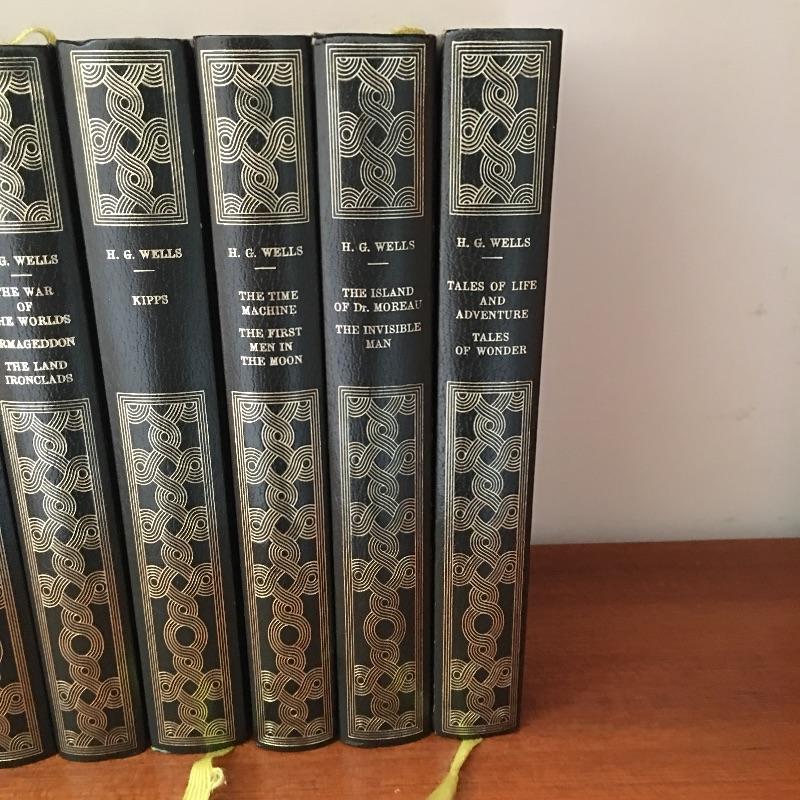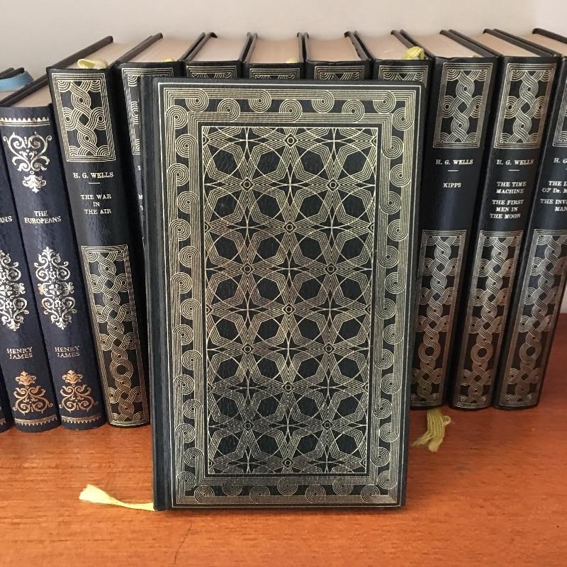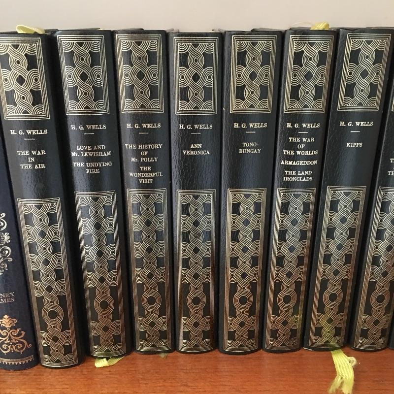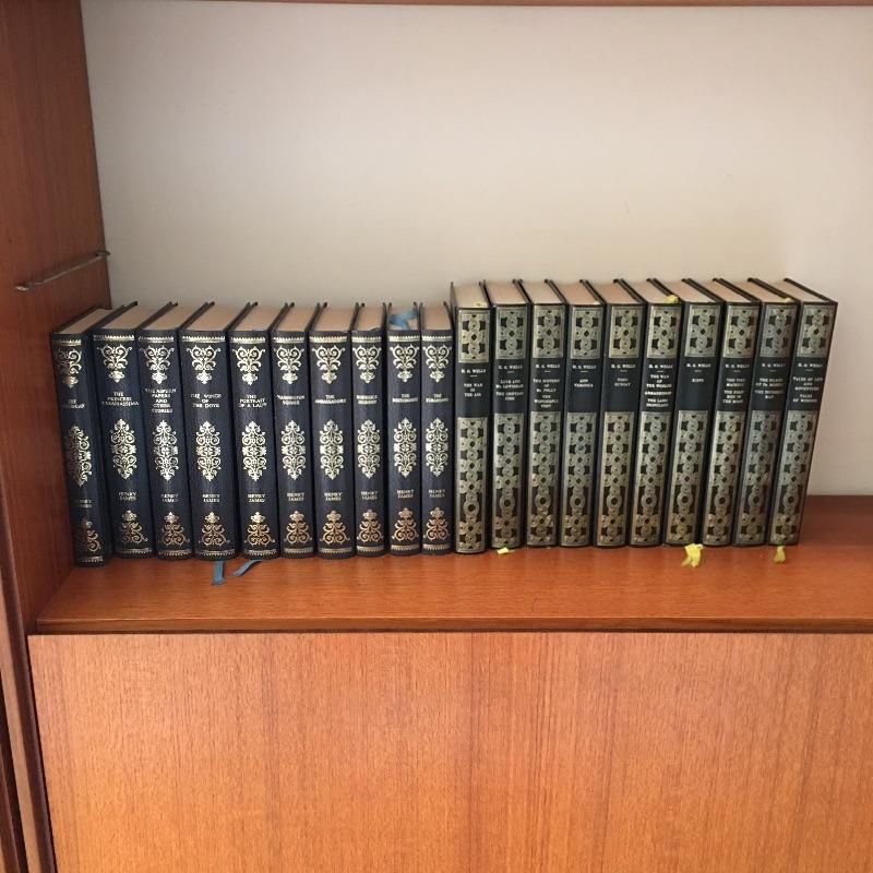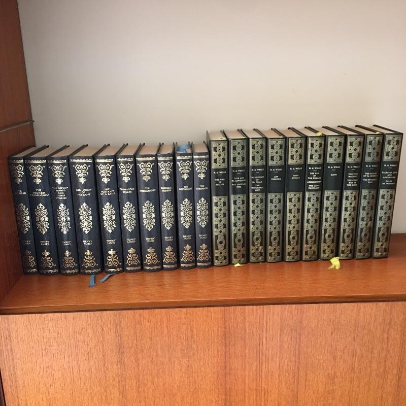 Leather bound books by Heron Books includes ten H.G. Wells books and ten books by Henry James all bound in handsome black leather.