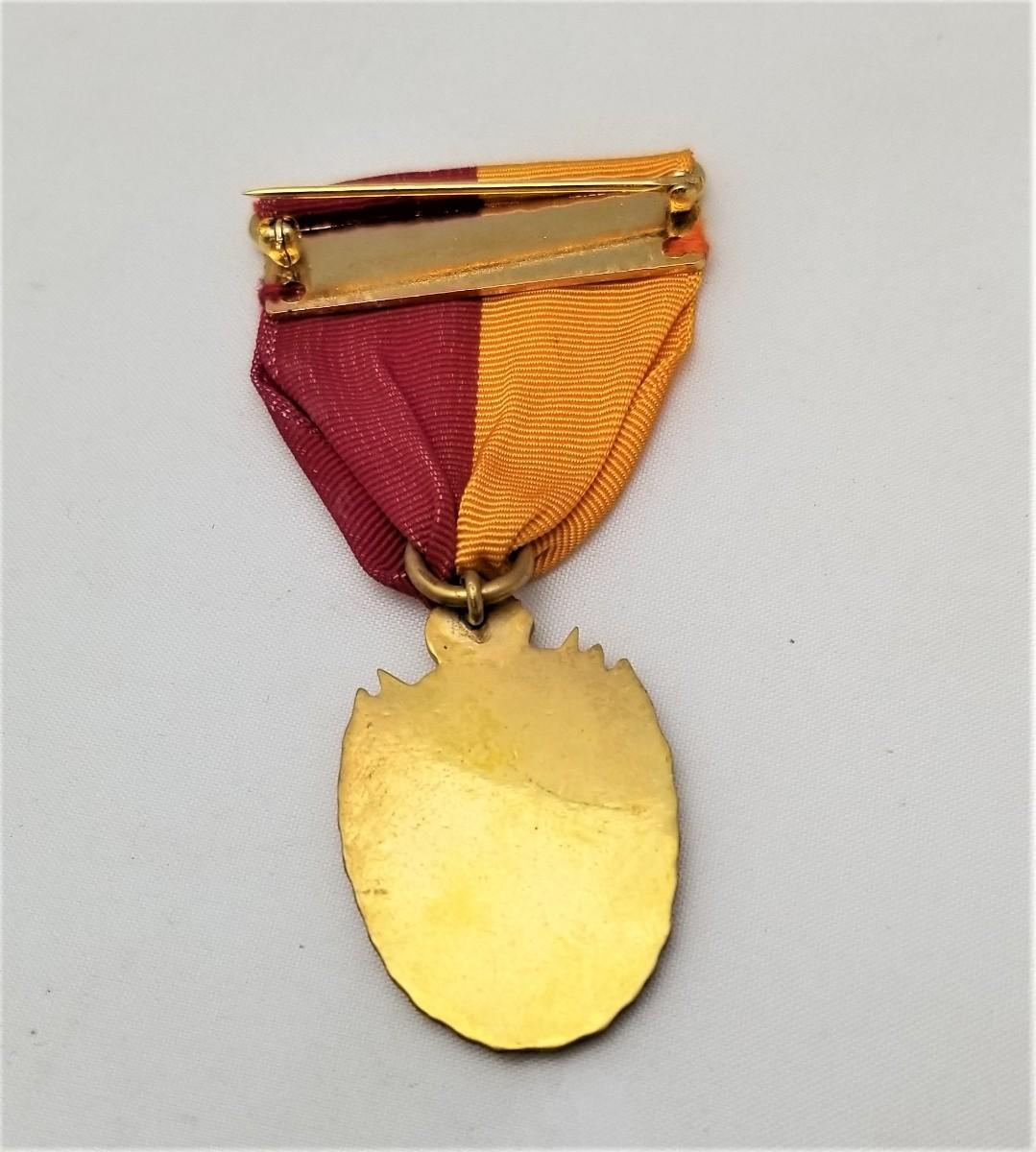 Dr. Curry was a member of many lineage organizations and some of her insignia will be offered in this sale. This medal is worn by the members of Magna Carta Dames and Barons, a society for those who can prove lineal descent from one of the English Barons who signed Magna Carta. This handsome enameled medal measures 3 inches long. Good condition.
