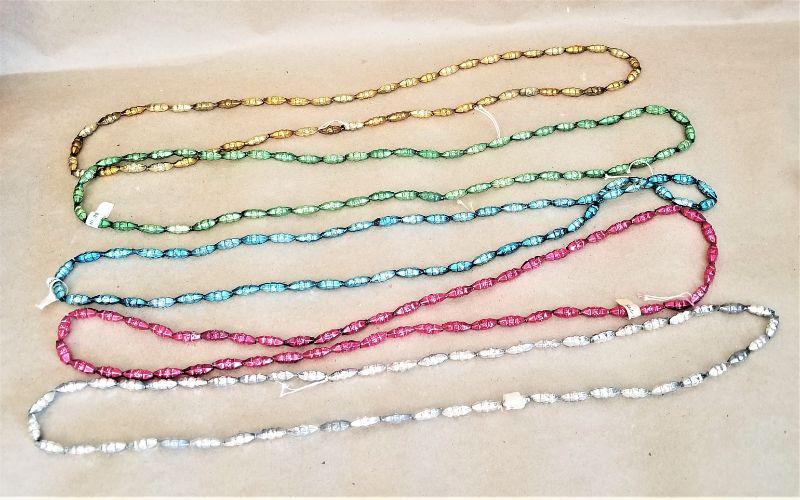 Lot #24 Lot of 5 Japanese Glass Bead tinsel strands - vintage Christmas