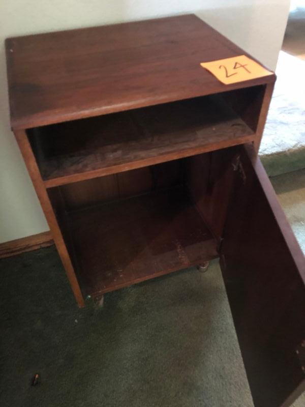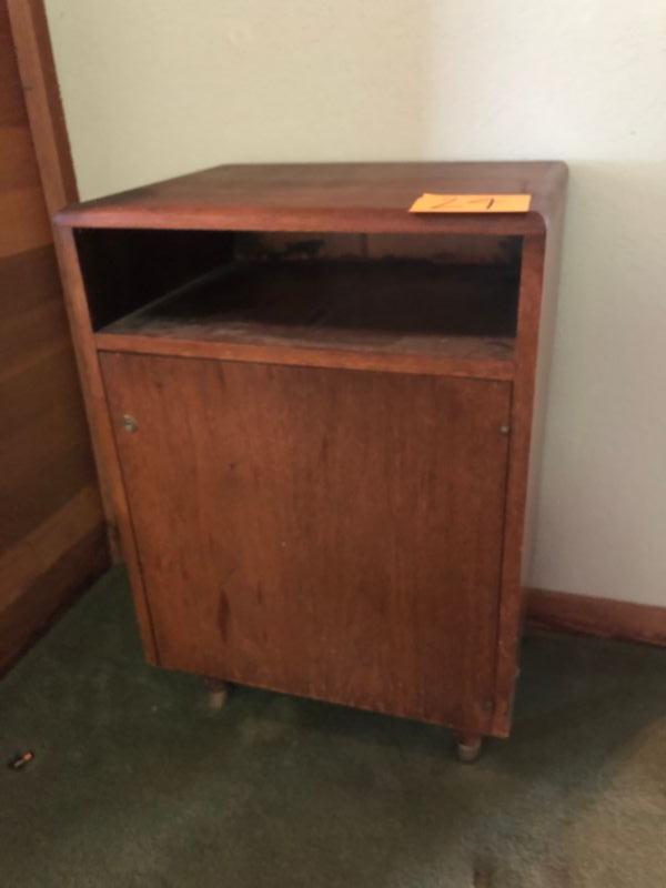 Vintage/mid century storage side table - no key - solid wood - 15.5in deep x 19.5in wide x 29in tall