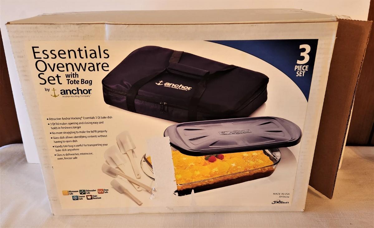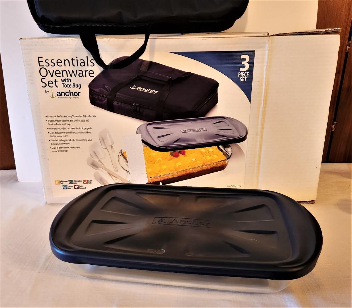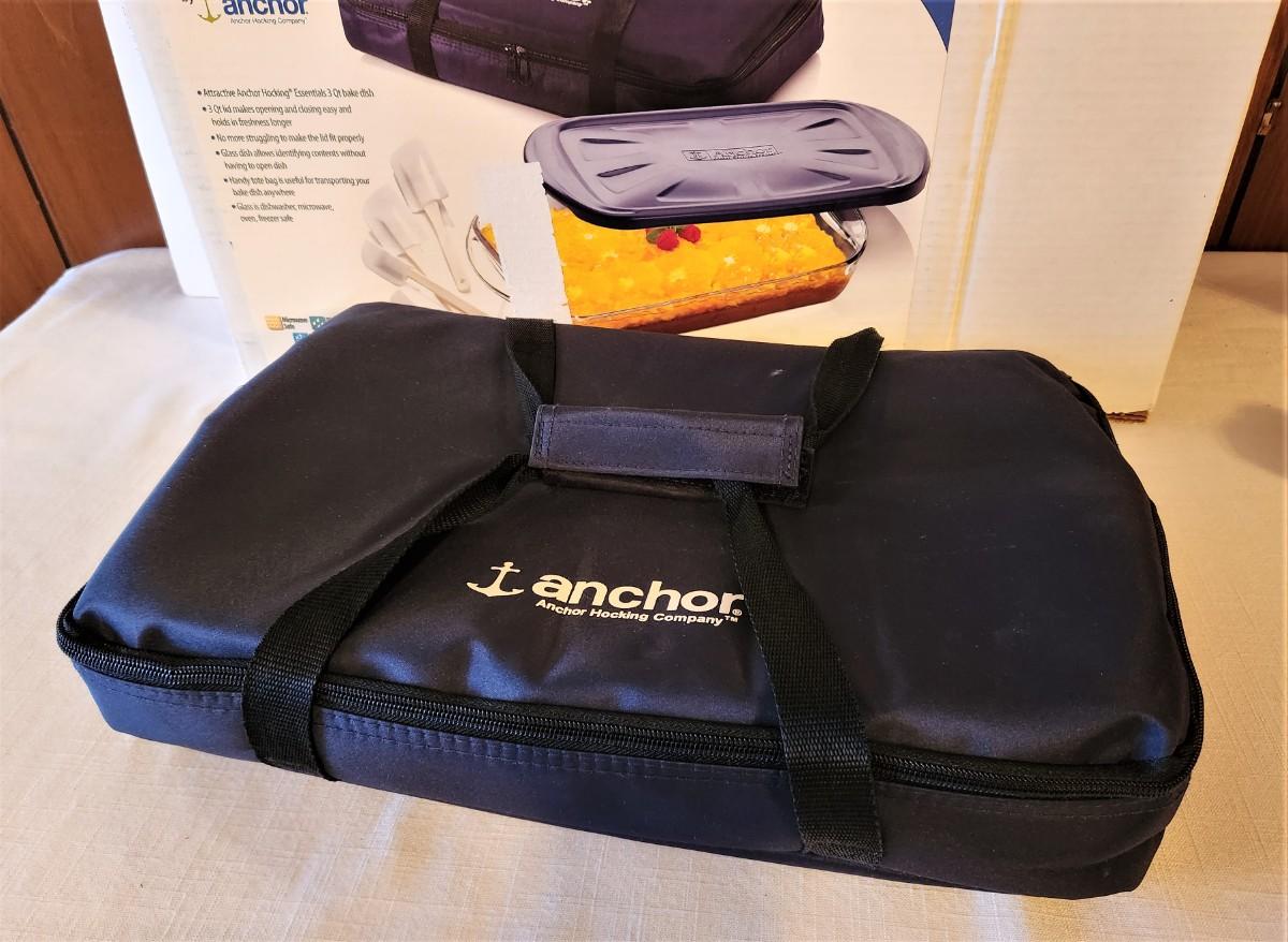 Box has been opened but item never used - Anchor Hocking 3 quart bake dish with insulated carry cover.