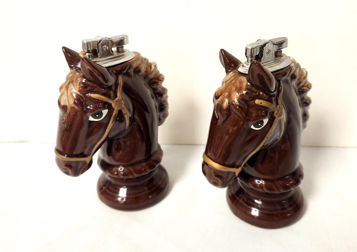 Lot #24 Pair of "Japan" Horse Head Table Lighters - 1960's