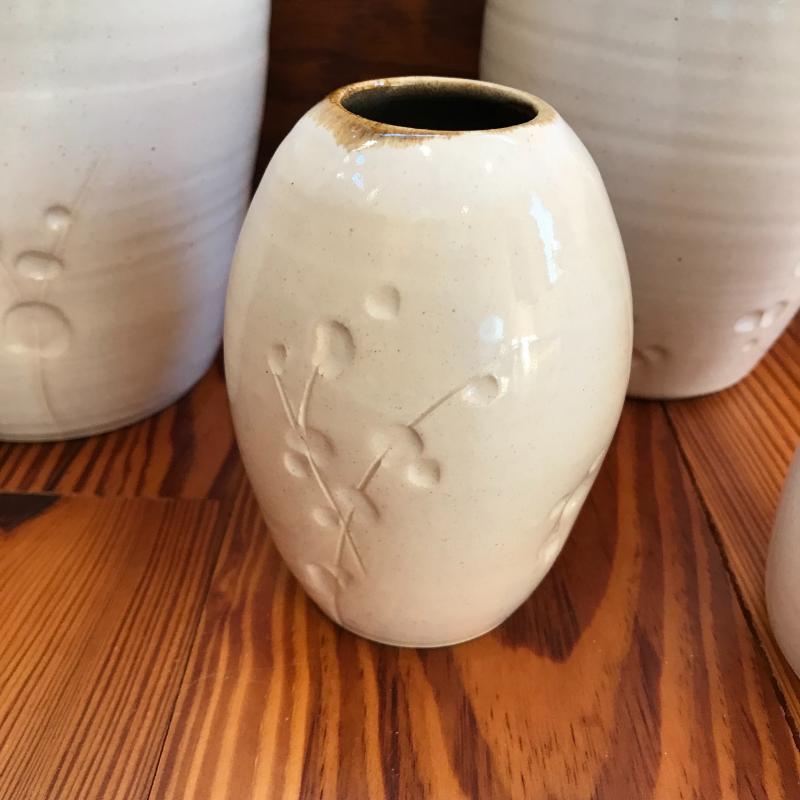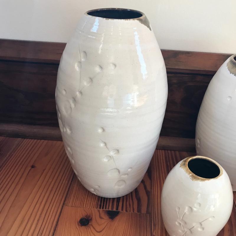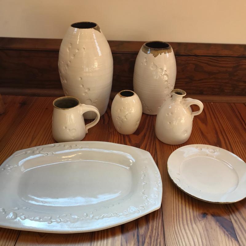 This elegant, yet whimsical pottery was purchased in Weaverville and made by local artist E. Janow. Tallest piece measures 10.5”. Shipping available or local pickup in Asheville, NC.