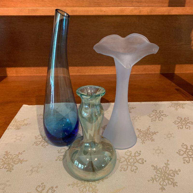 LOT 24 GROUP OF 3 BLOWN GLASS BUD VASES ABELMAN