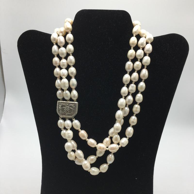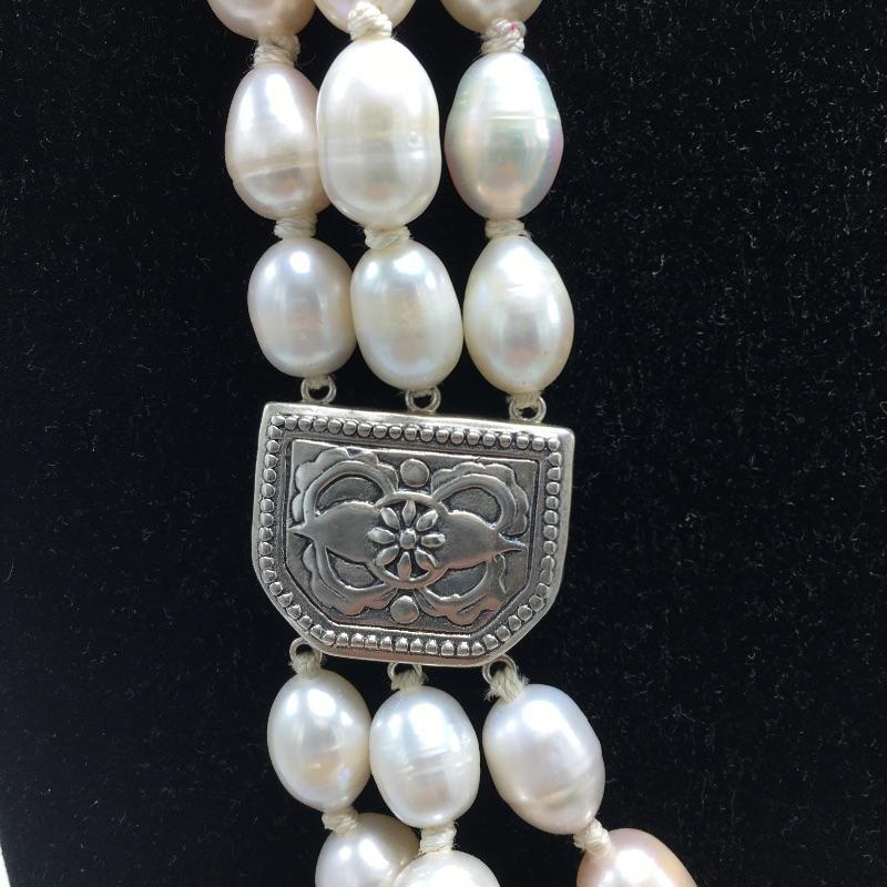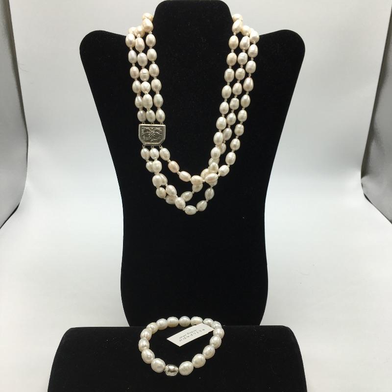 Lot 24 - Pearl and Silver Necklace & Bracelet