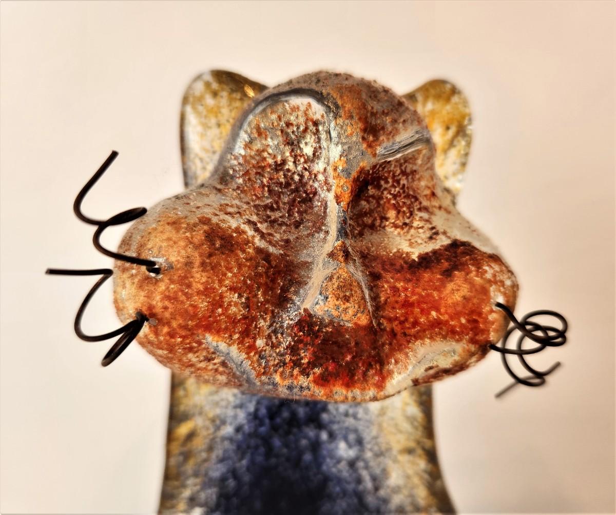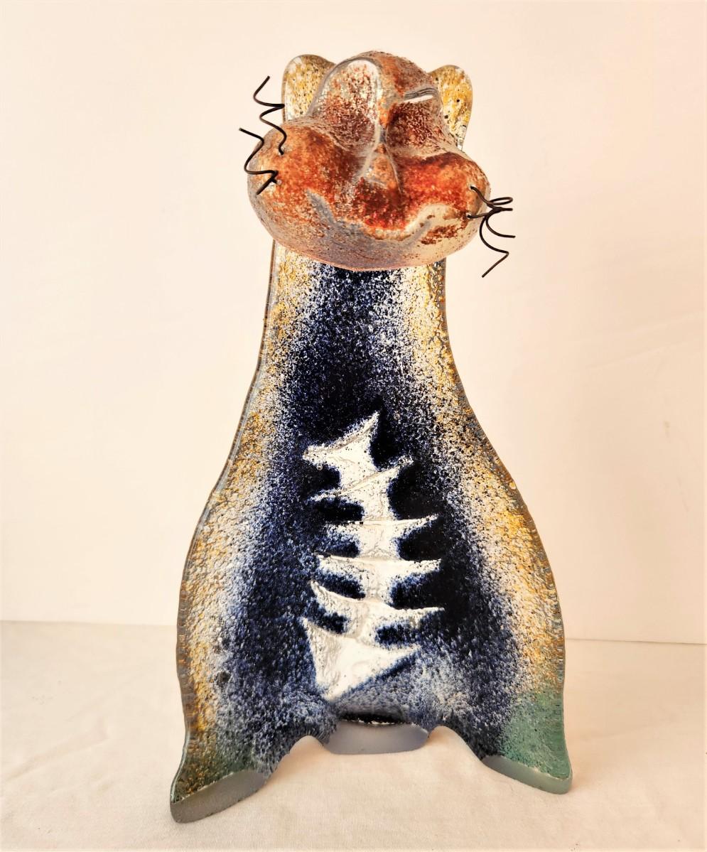 This cat has a very satisfied look on his face. Studio glass sculpture, not signed. Wonderfully tactile - I love it and I'm not a "cat person!" Great condition - 10" tall