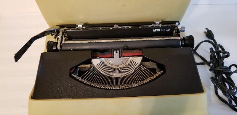 This vintage Royal Apollo 10 Electric Typewriter works, but badly needs a new ribbon. Measures 13" x 13.5".