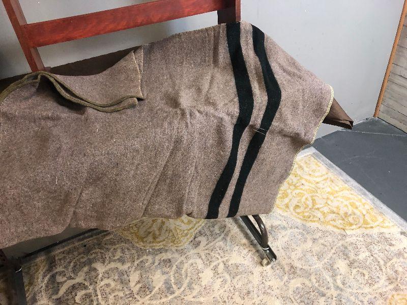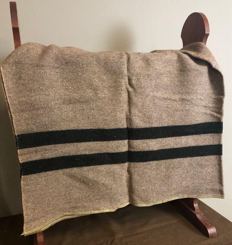 Lot# 24 Vintage Wool Blanket Brown with Black Stripes