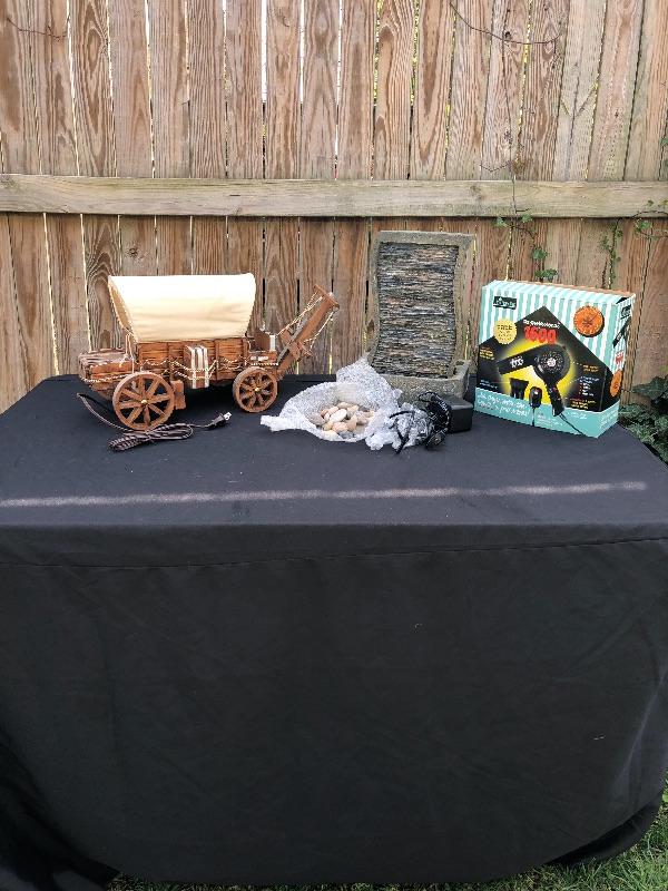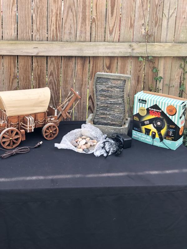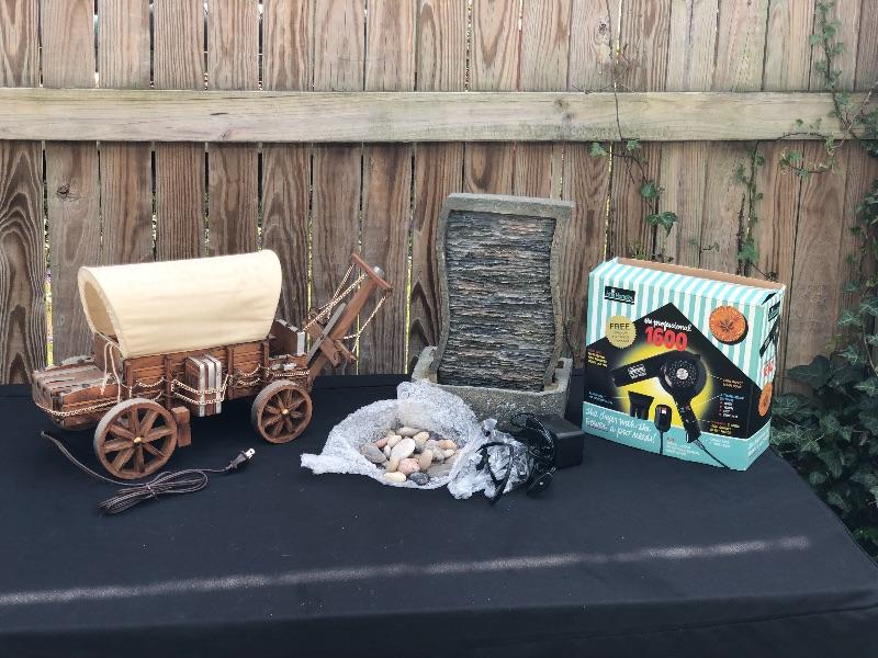 LOT 24 - Wagon Lamp, Stone Waterfall, Hair Dryer