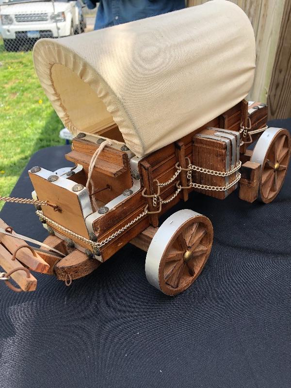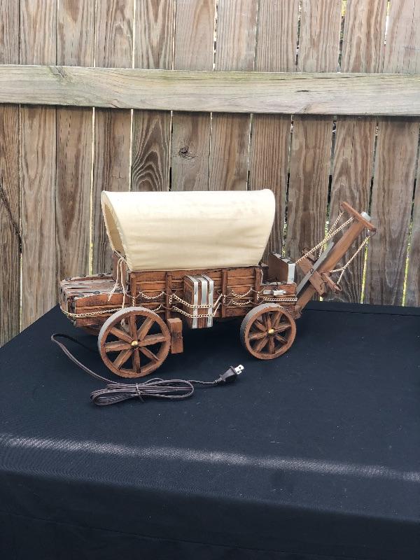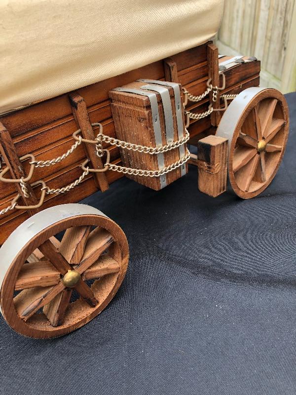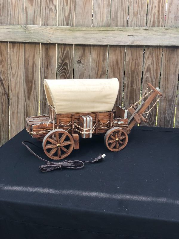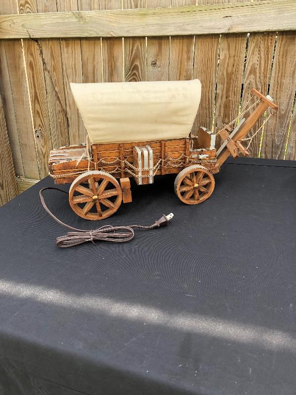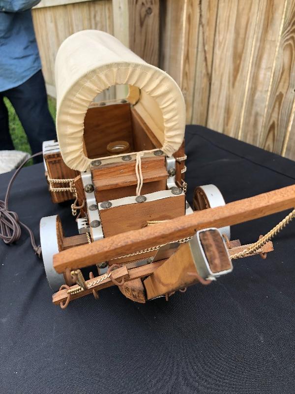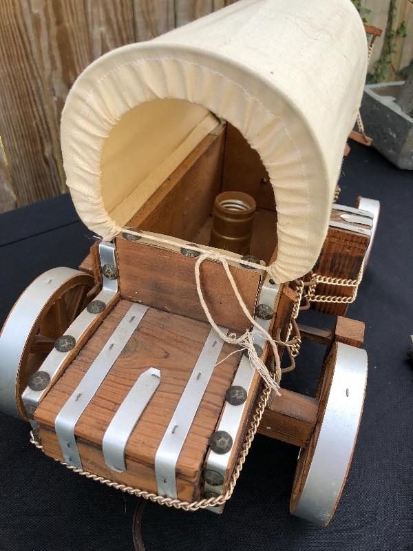 Unique Handmade Wooden Wagon with Light. Brass accents. 20" Length