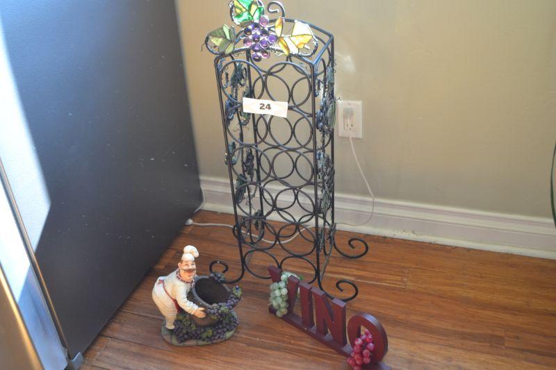 LOT 24. . WINE RACK AND WINE RELATED DECOR
