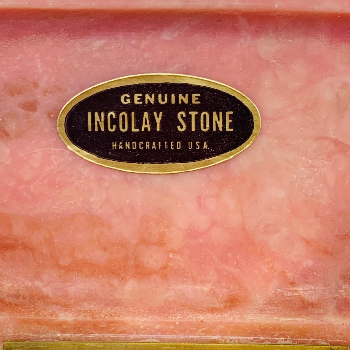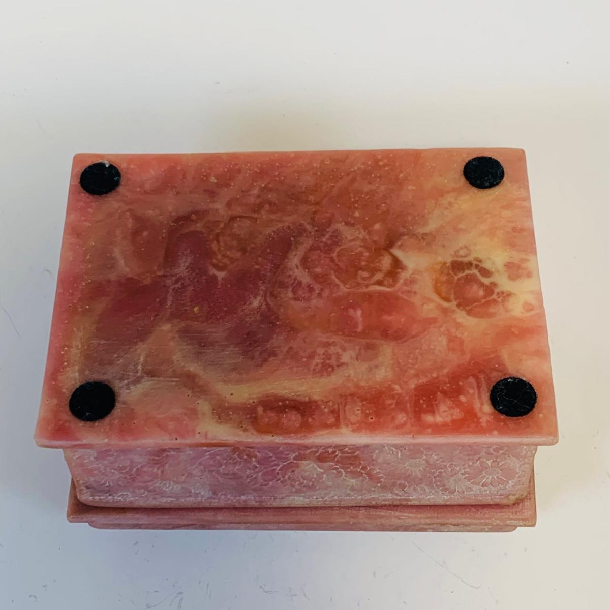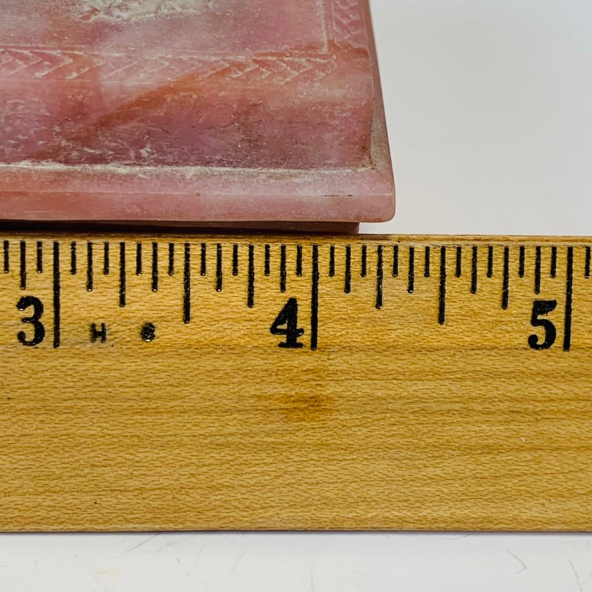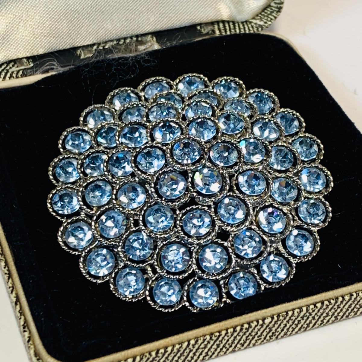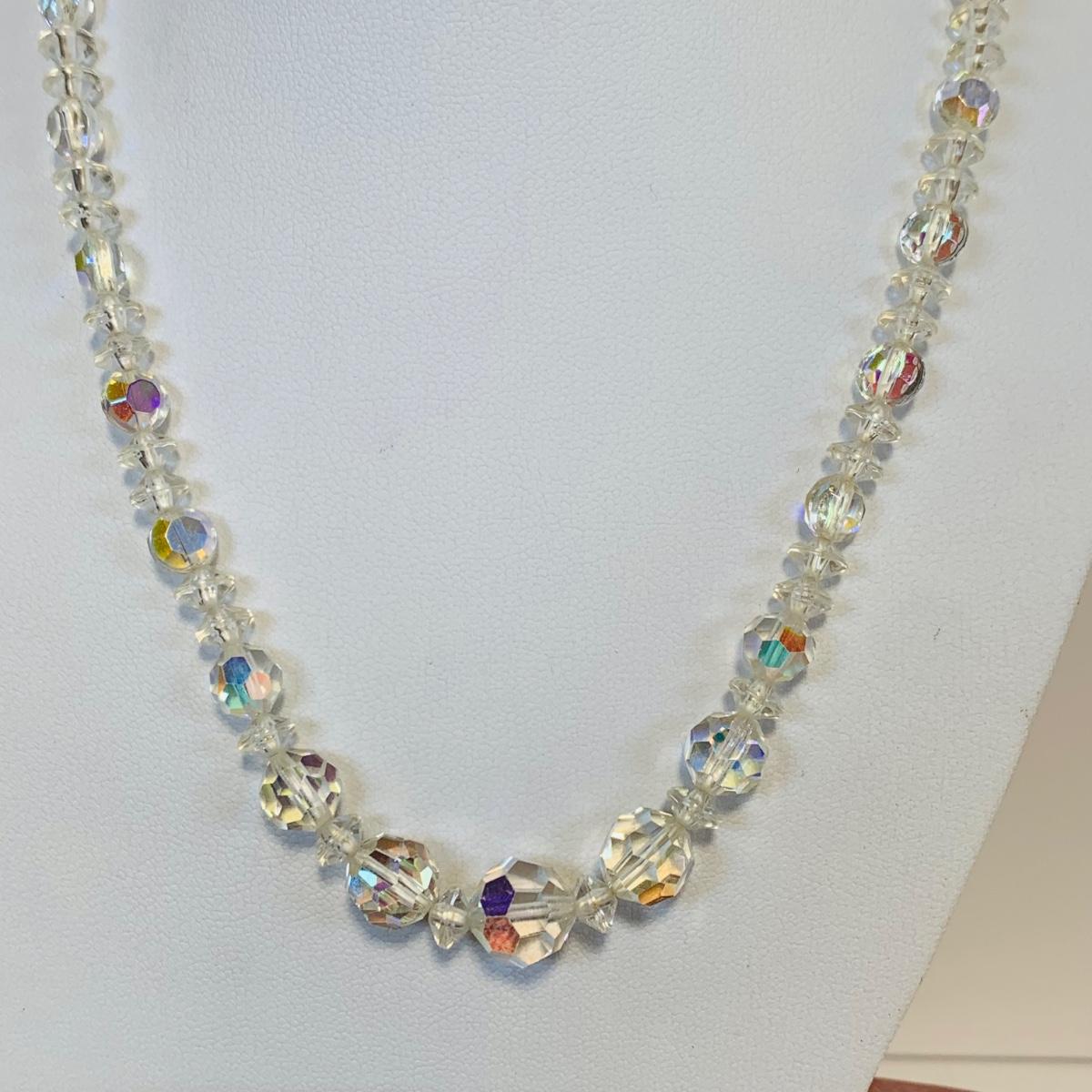 Lot 240: Vintage Beautiful Pink Incolay Stone Trinket Box, Vintage Blue Rhinestone Brooch, Vintage Aurora Borealis Necklace & Wishbone Pin