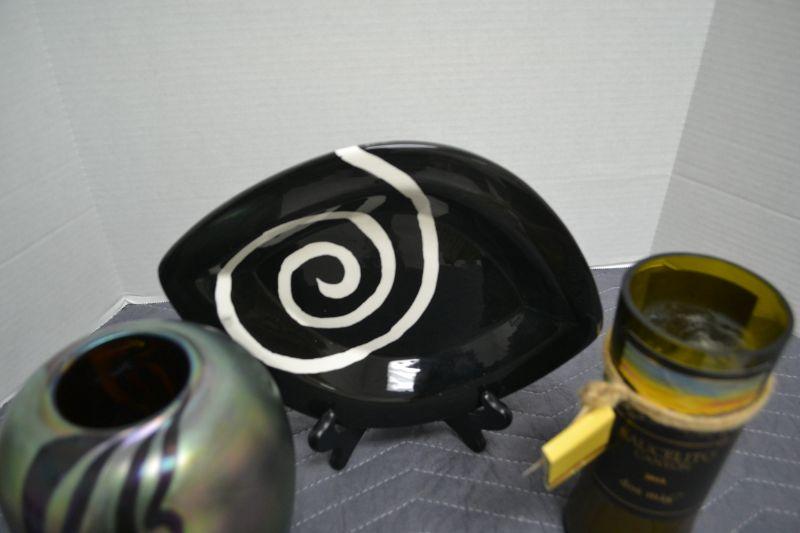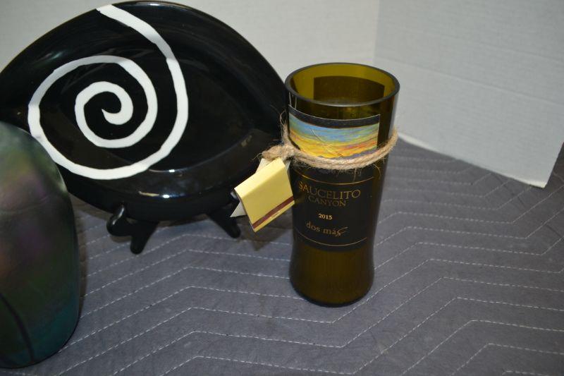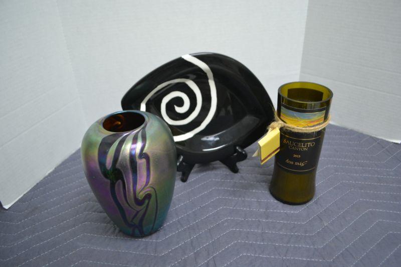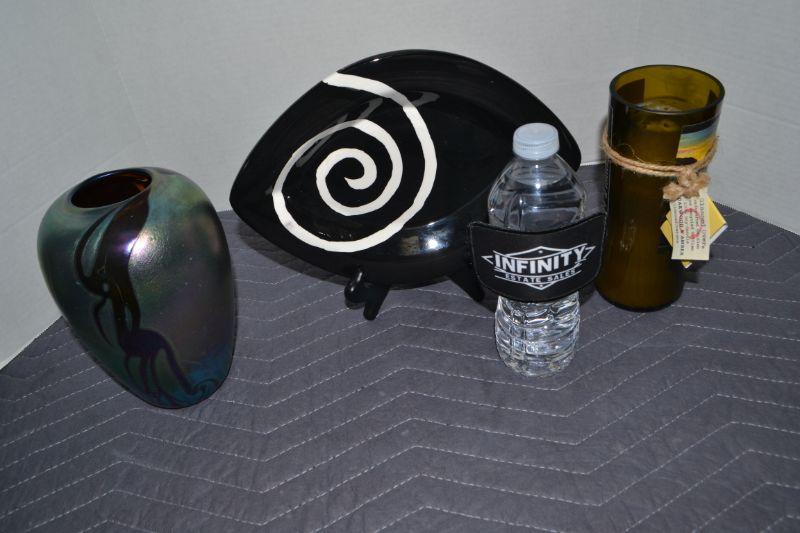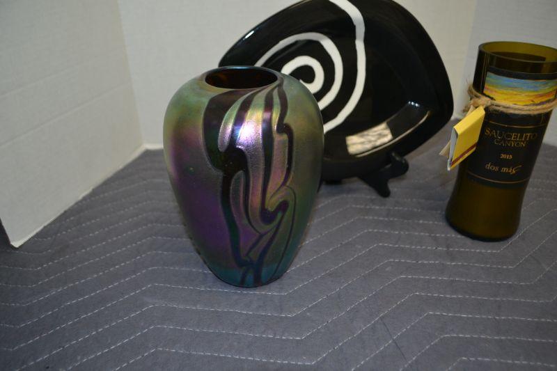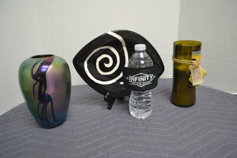 LOT 240 HOME DECOR VASE, PLATE AND CANDLE