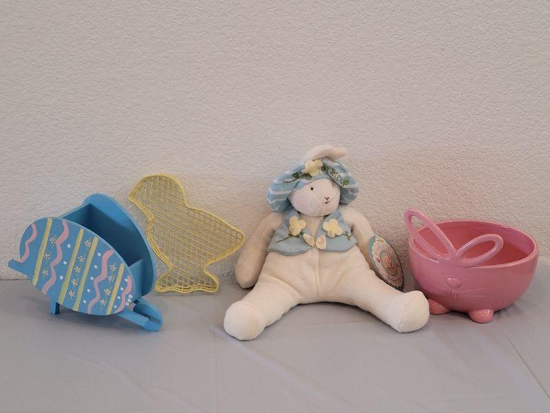 Lot 240: Easter Bunny Bowl, Bunnies by the Bay- Buttercup, Egg Wheelbarrow and Chick Basket