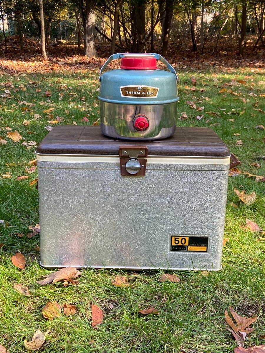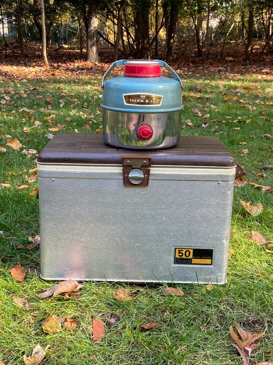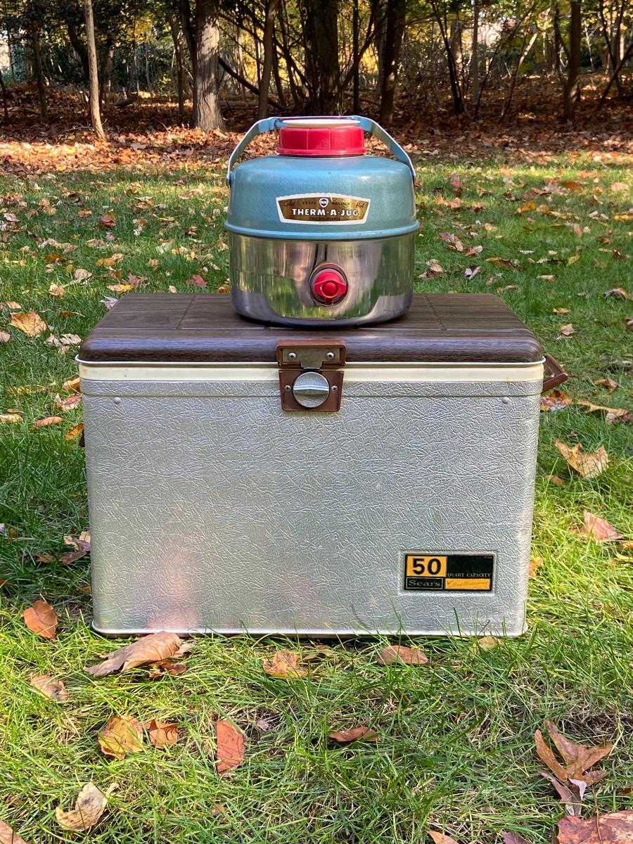 Lot 240: Vintage Sears Cooler and Therma Jug