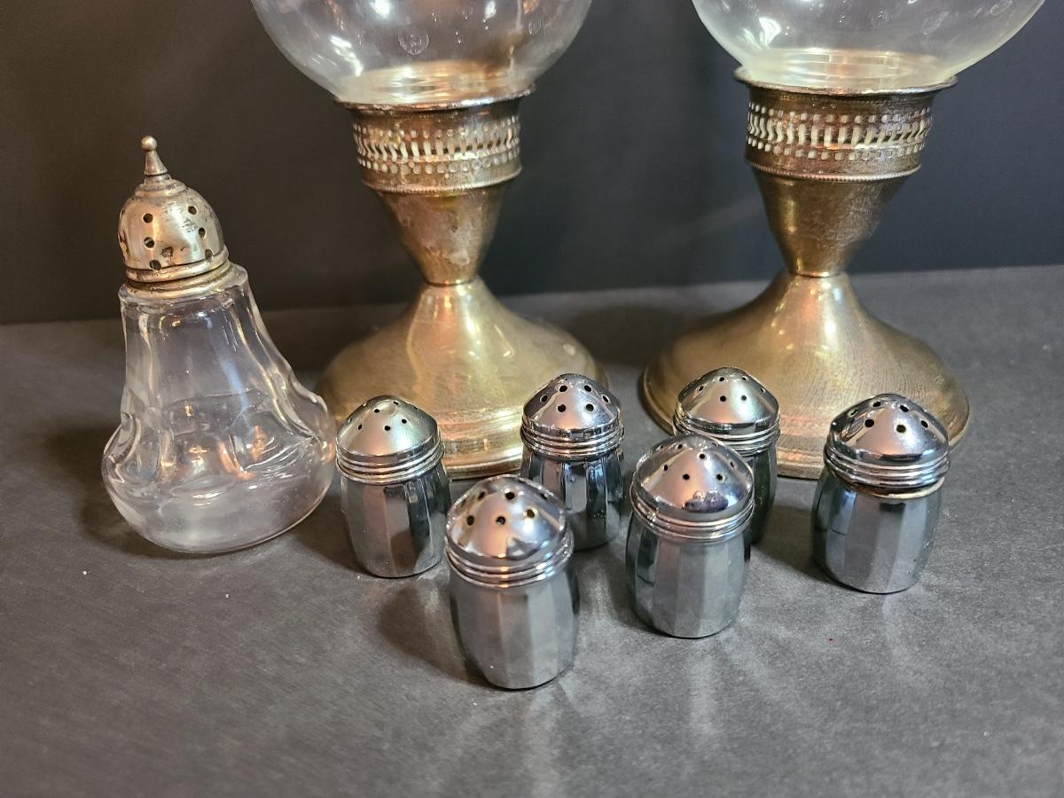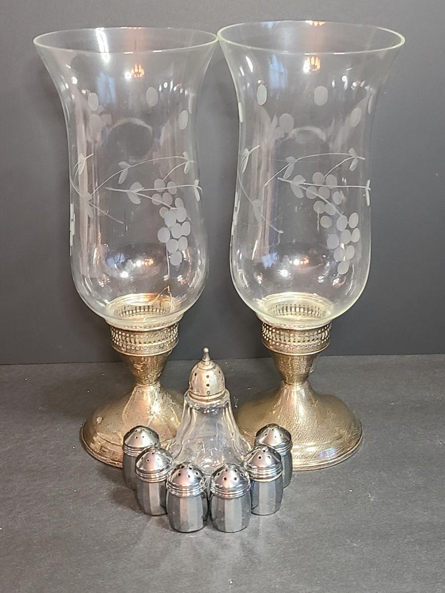 Lot 240: Sterling Silver Candlesticks/Salt & Peppers