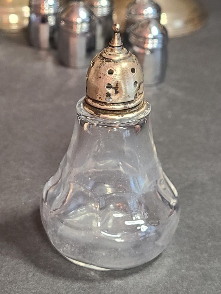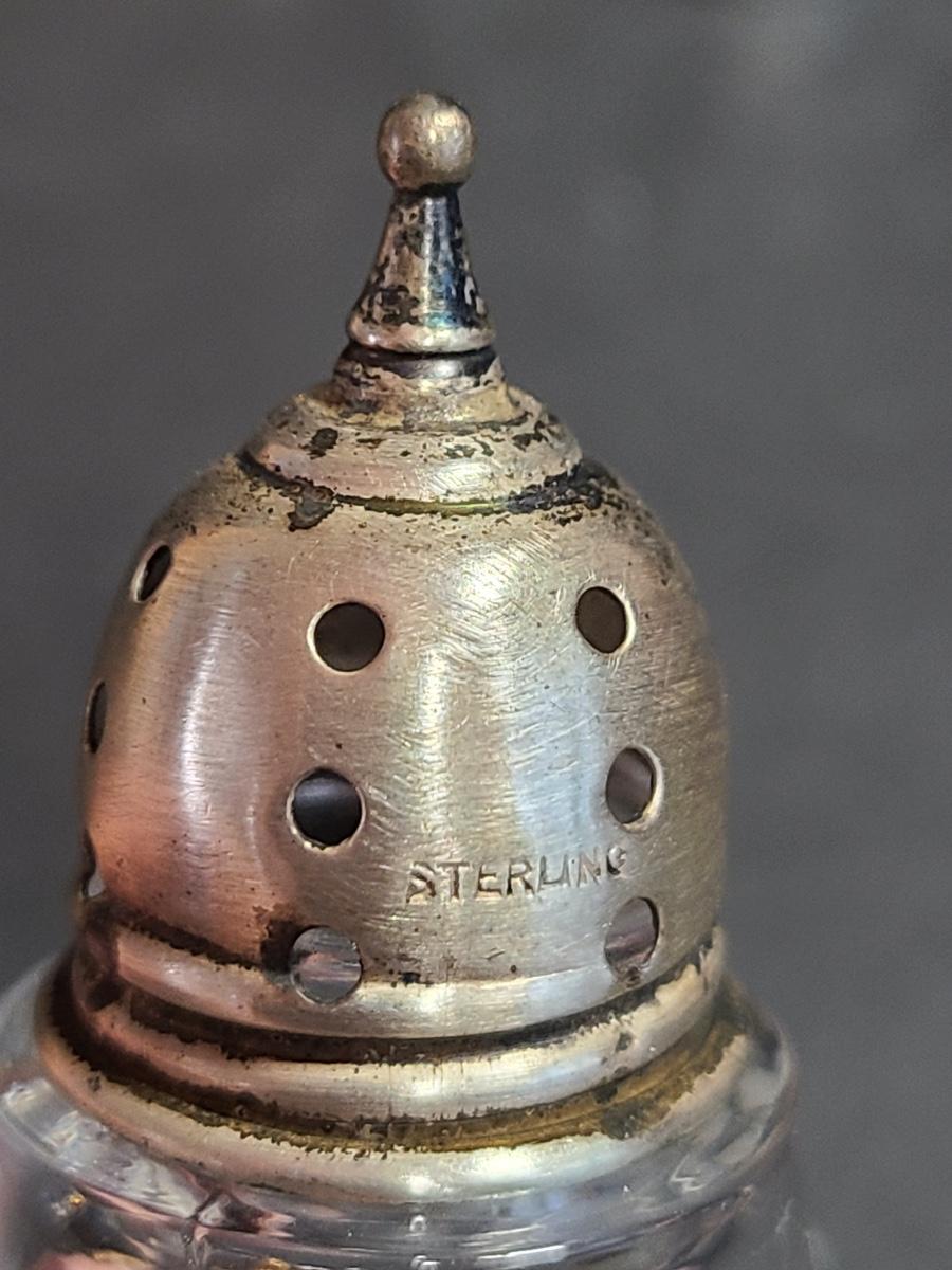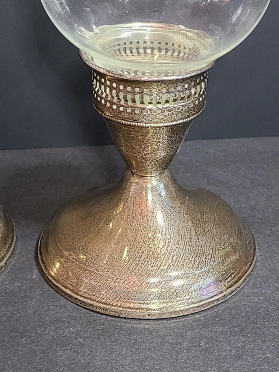 Two vintage candlesticks, weighted sterling with glass tops, but one is broken. Also includes small sterling salt and pepper sets, and a sterling capped shaker. Please see all pictures as they are the best representation of the items. The pictures show condition, measurements if taken, and what is included in the lot. Due to the large amount that we photograph and the time frame, we are not always able to take measurements. All items unless noted, are pre-owned and have been used. If you purchased furniture, you must bring help. We do not allow one person to carry large furniture out on their own. Bring help, tools and a truck for the safety of our client’s homes, and your personal safety. Company policy. Thank you.