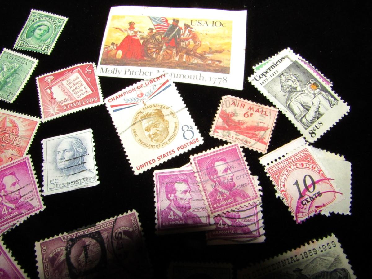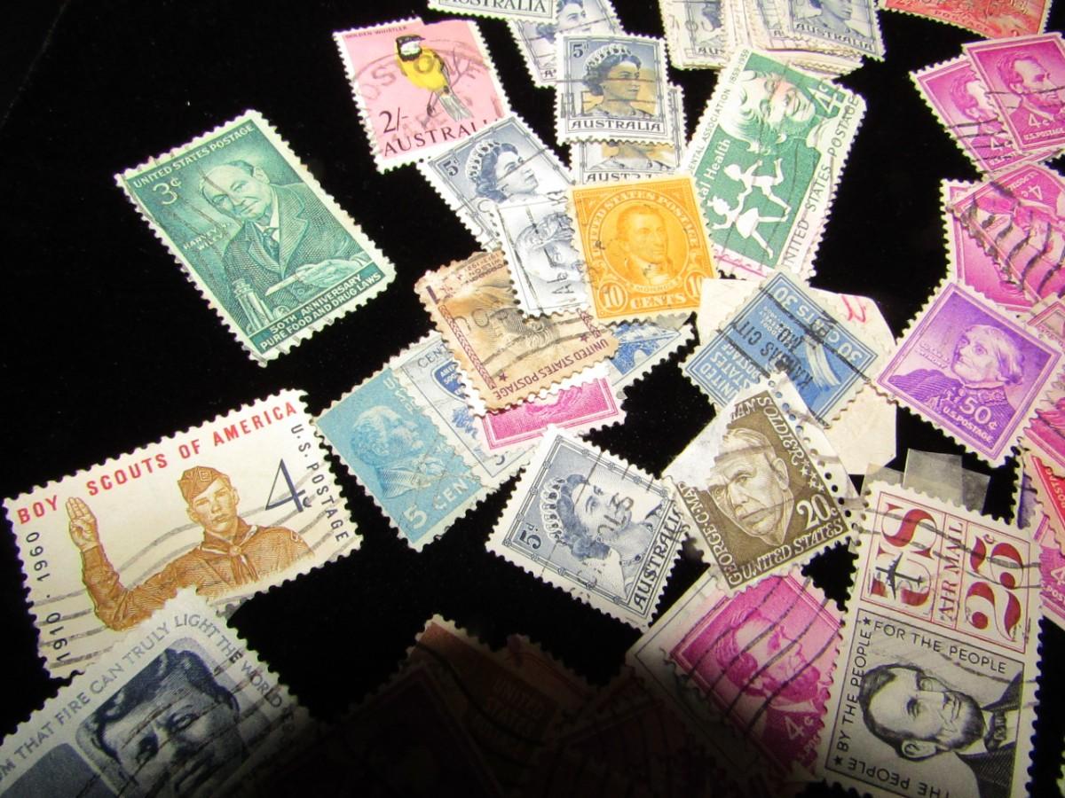 CANCELED US AND INTERNATIONAL POSTAGE STAMPS
