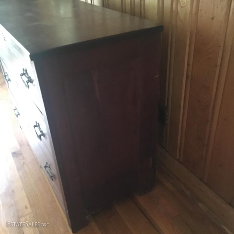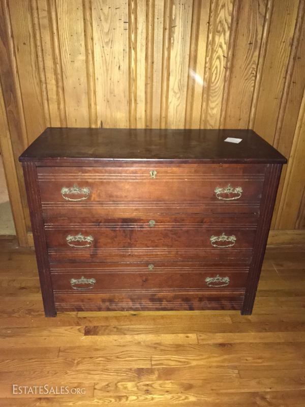 Antique Dresser. Top is a little loose. Has small holes on top where it looks like something may have been attached. Three drawers. 40"l x 18"w x 32" h