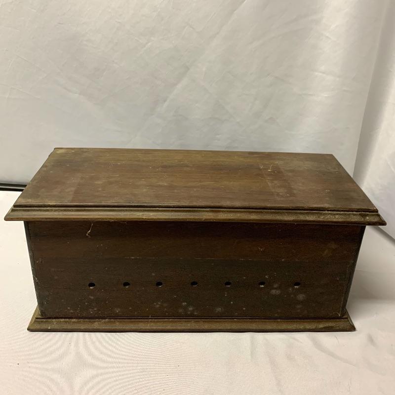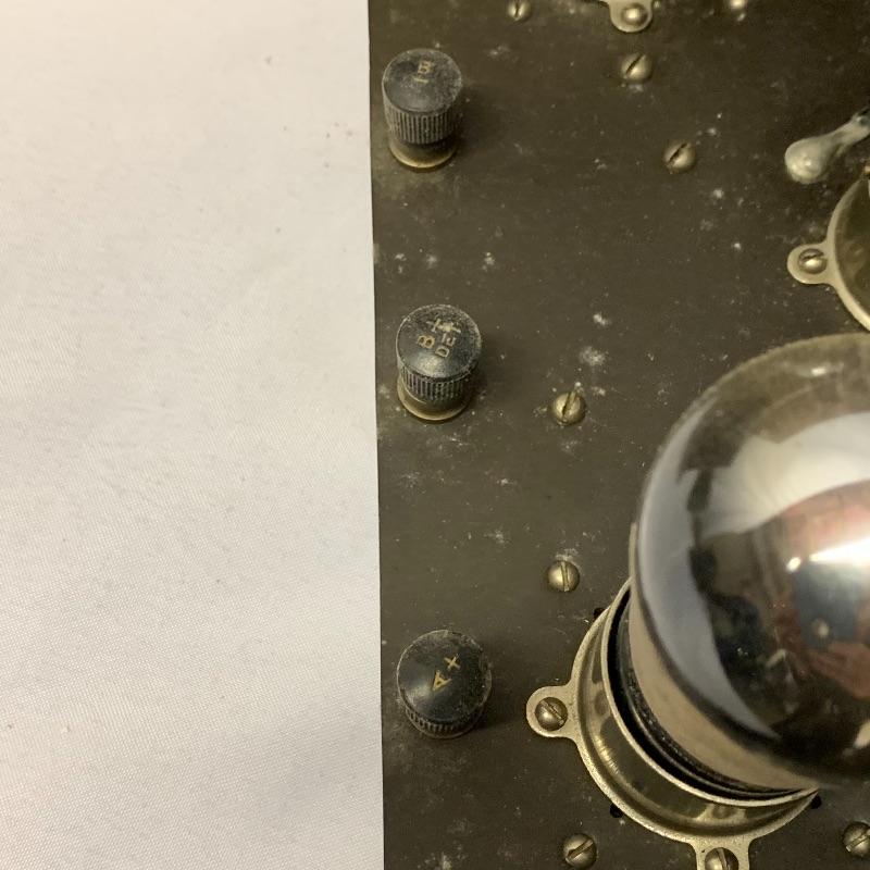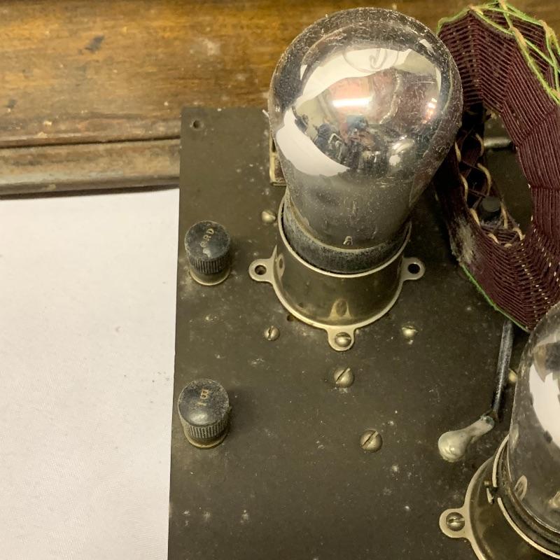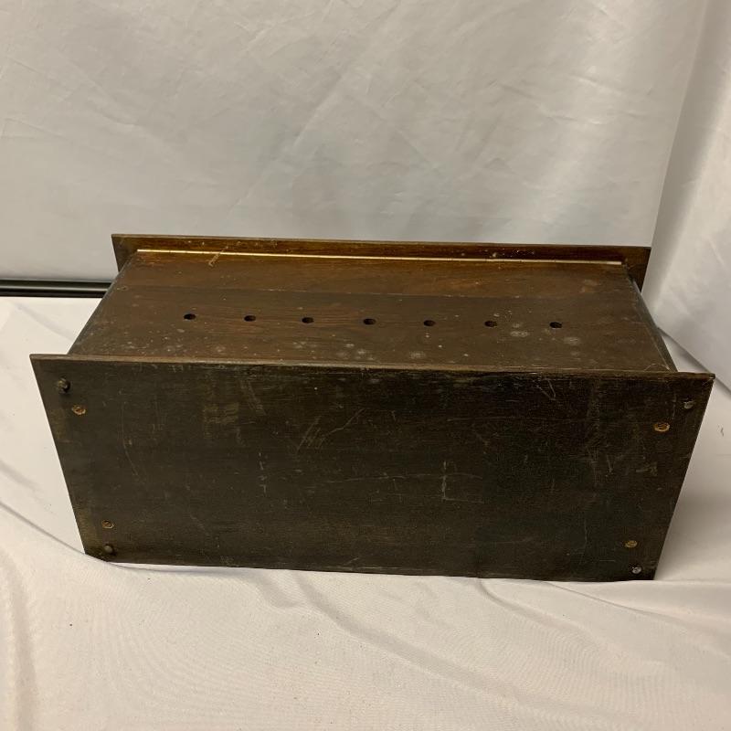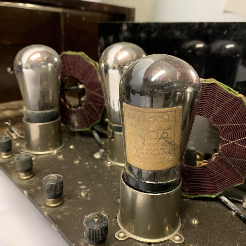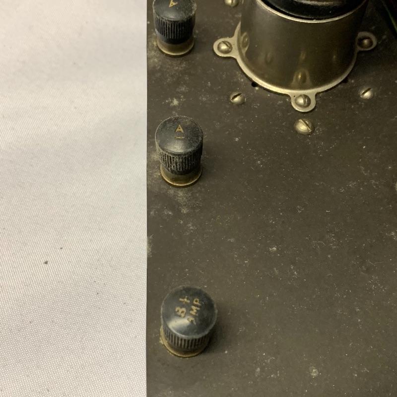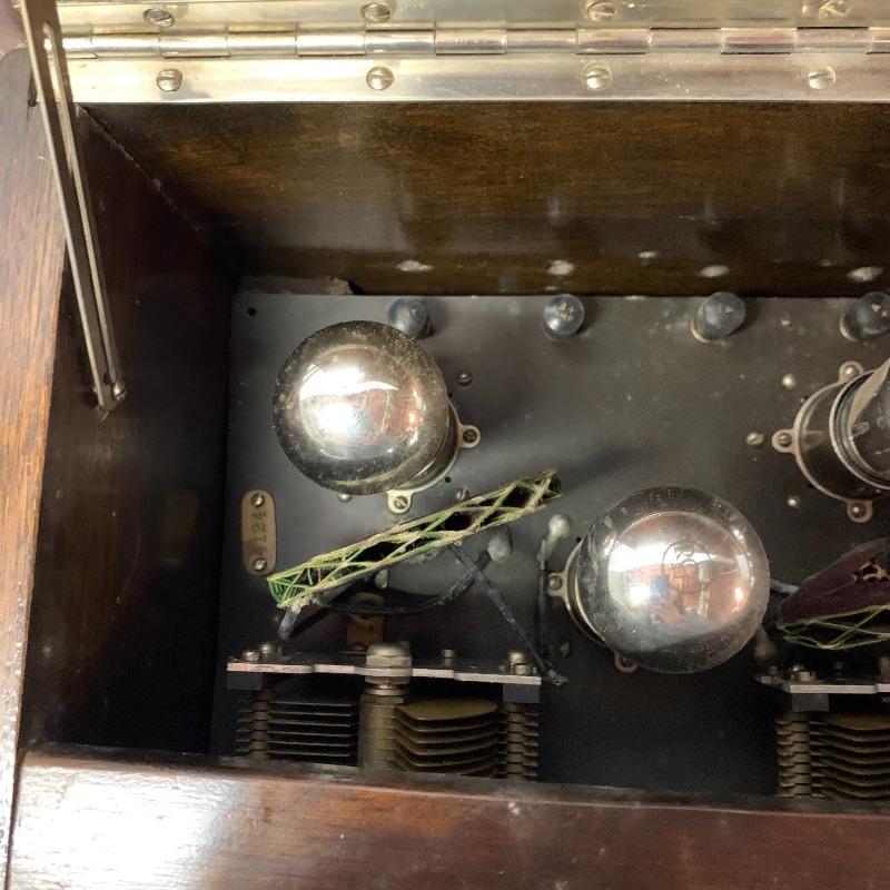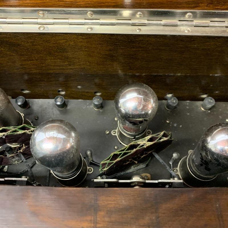 Antique Airo Master chest style radio with five tubes. It comes in a wooden case with a lid. It has three tuning knobs, a volume knob, and clarity knob.